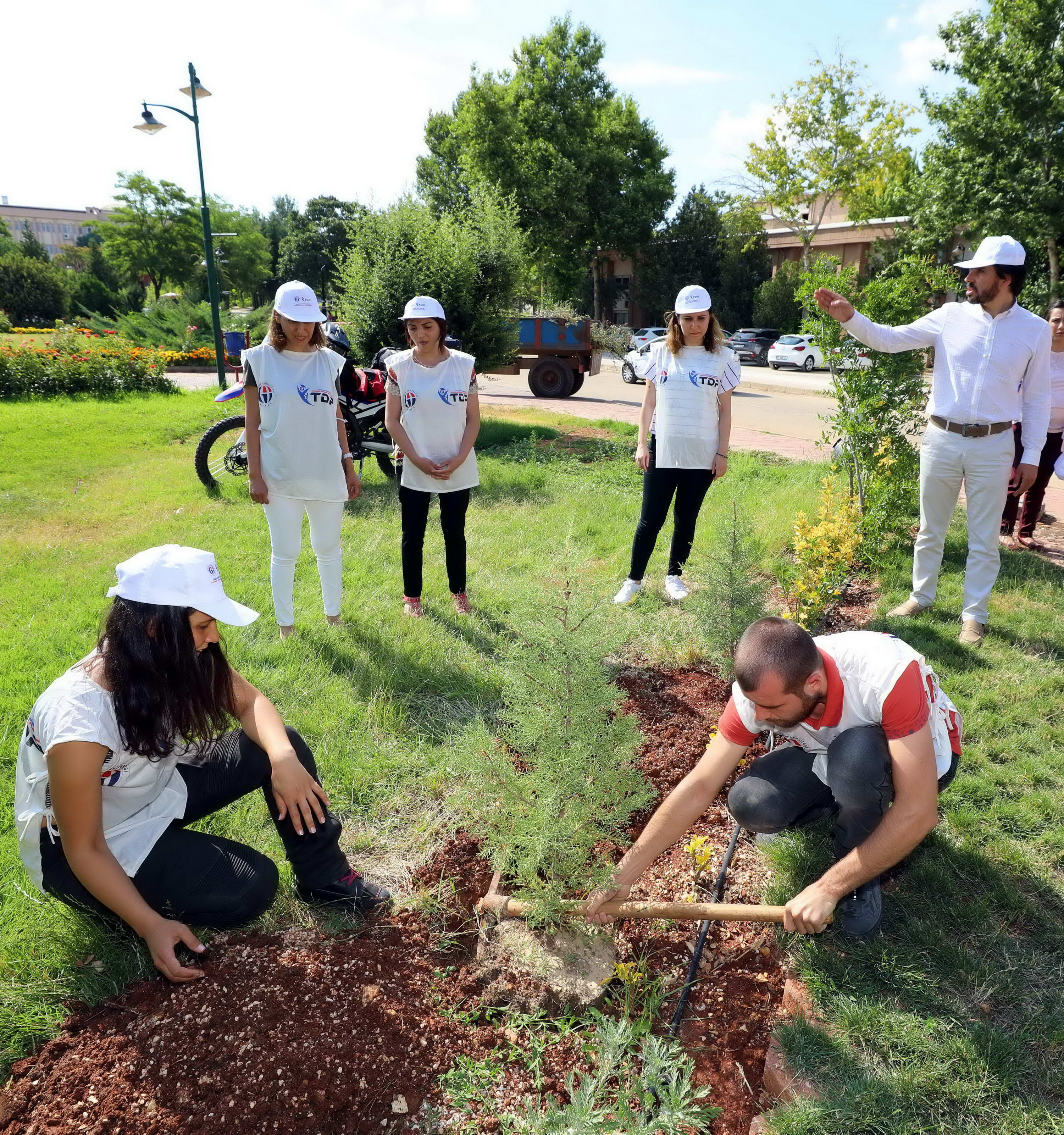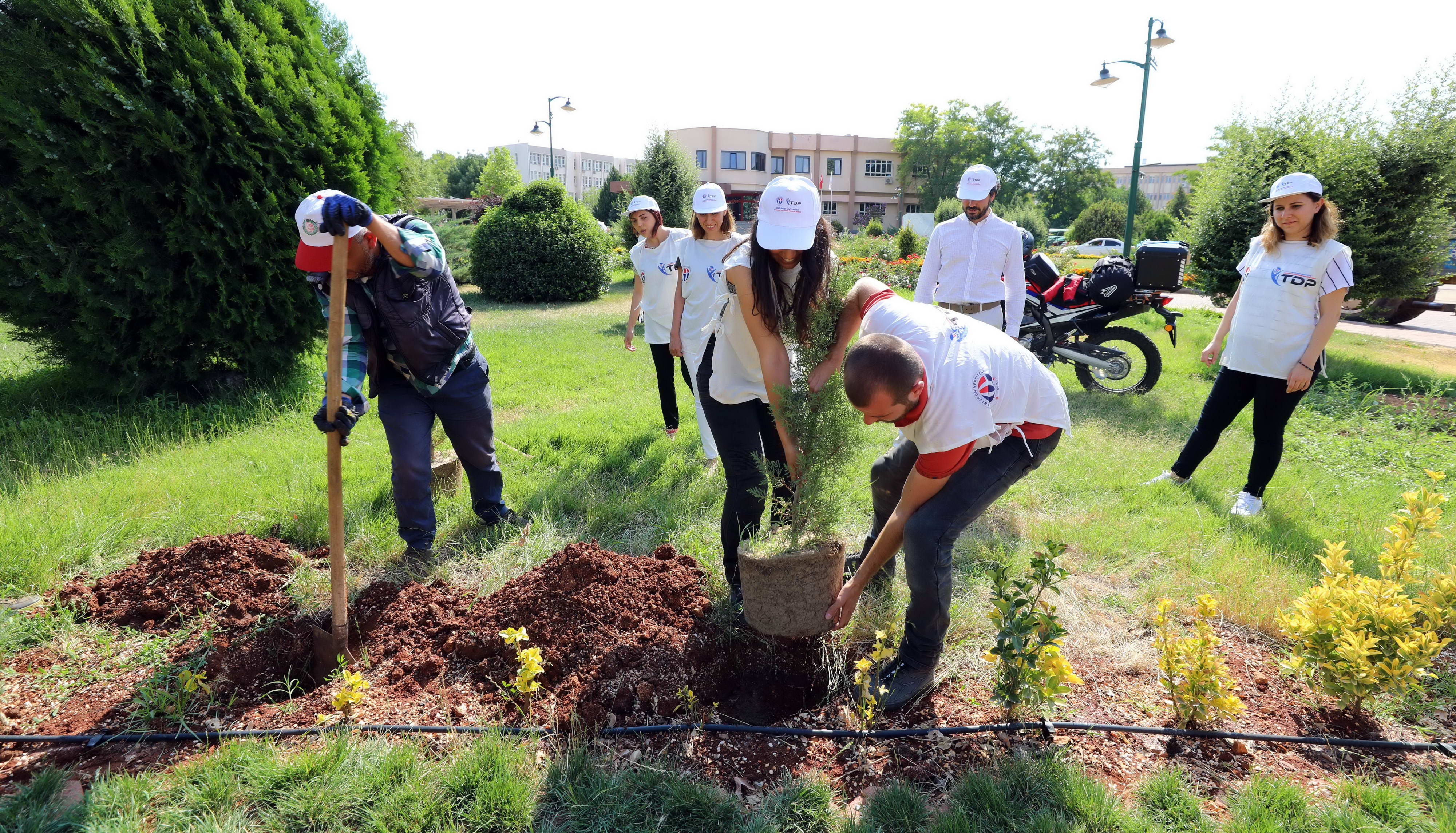 GAÜN Toplumsal Duyarlılık Projeleri Merkezi kapsamında, GAÜN Rektörlüğü önündeki yeşil alanda gerçekleşen fidan dikme etkinliğinde, Genel Sekreter Yardımcısı Mehmet Ali Eminoğlu ile, Toplumsal Duyarlılık Projeleri (TDP) Merkezi personelleri de hazır bulundu.