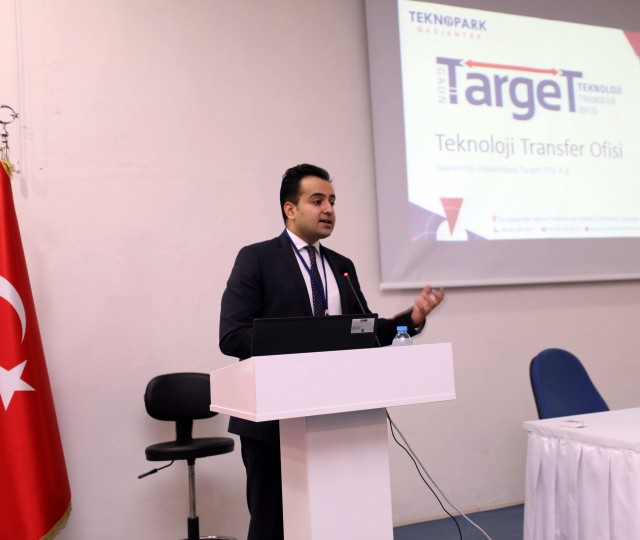 GAÜN Target TTO ve Teknopark tanıtım sunumlarını yapan Gaziantep Teknopark Genel Müdürü Ekrem Tekin de, son beş yılda 158 patent başvurusu gerçekleştirdiklerini, şu anda toplam 136’sının aktif bir şekilde devam ederek şöyle dedi: “136 buluştan birisinin sizin firmanıza, fabrikanıza, işletmenize uyabilme potansiyeli var. İster bize deyin ki, gelin birlikte bizim problemlerimizle birlikte çalışalım, ister deyin ki, sizin hazır problem çözümleriniz varsa bunlardan bize uyabilecekleri biz seçelim ve firmanıza transfer edelim diyelim. Döngü demiştik, halkın parasıyla yönetilen bilginin halkın faydasına dönmesi de bizim en büyük amacımız.  Ar-Ge merkezleriyle anlaşmak, teknoloji transferi konusunda da biz çok daha verici davranmak istiyoruz.”