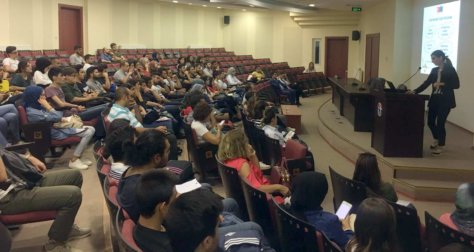 Etkinliğin açılış konuşmasını yapan GAÜN Avrupa Birliği Araştırmaları Merkezi Sorumlusu Öğr. Gör. Şehnaz Sakıcı, 1989 yılında Türkiye Cumhuriyeti ve Avrupa Komisyonu arasında yapılan bir anlaşmayla hayata geçirilen Jean Monnet Burs Programı ‘nın Türkiye’nin en köklü projelerinden biri olarak yürütüldüğünü belirtti.  Öğr. Gör. Şehnaz Sakıcı, “Özellikle gençler için çok önemli Avrupa Birliği fırsatlarından biri olan bu burs programı için gereken şartları şimdiden sağlamak adına önemli bir etkinlik. Yeni dönem ve gelecek dönem başvuruları için Gaziantep Üniversitesi olarak bursiyer çıkarabilmek en büyük temennimizdir” dedi.