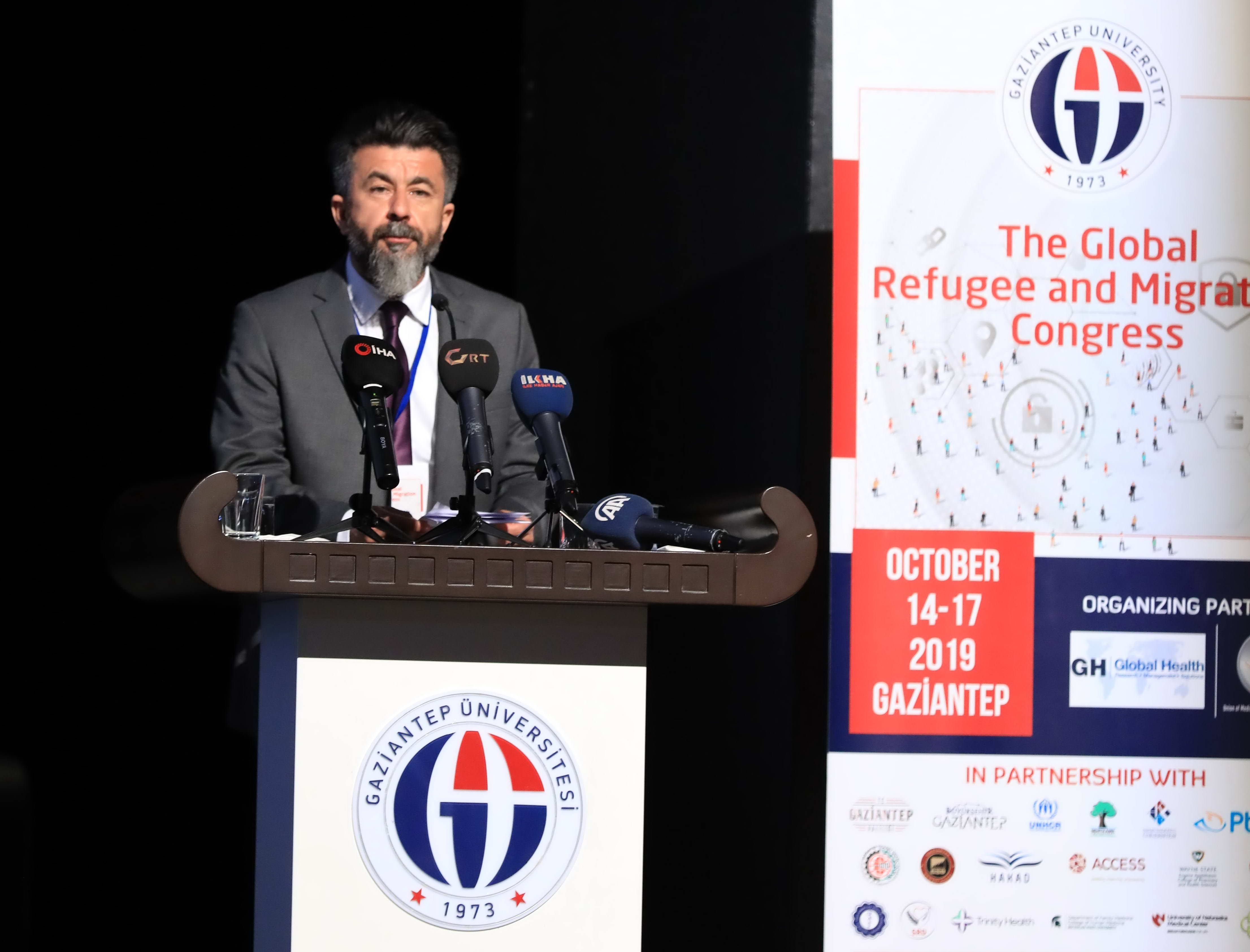 Gaziantep Üniversitesi Göç Enstitüsü Müdürü Prof. Dr. Mehmet Nuri Gültekin ise kongrenin açılış konuşmasında, Suriye’deki savaşla beraber daha çok farklı açılardan görülmeye, ele alınmaya başlayan mültecilik, göç veya yerinden edilmiş insanlar meselesinin sadece siyaset üreten ve uygulayanların değil, bilgi üretenlerin ve öğretenlerin de ezberlerini bozmaya devam ettiğini söyledi. Prof. Dr. Gültekin, “Artık neredeyse bütün dünyada sürekli hareket halinde ya da harekete hazır on milyonlarca insan bulunuyor. Türkiye, Anadolu ve Ortadoğu, bu insan hareketliliğinin, göçün, savaşların, şiddetin, zorla yerinden etmelerin, yerleşmelerin, sürgünlerin, mülteciliğin her dönemde damgasını vurduğu beşeri bir coğrafya. Dört gün sürecek kongrede, sosyo-kültürel ve sağlık ana başlıkları altında dünyanın dört bir yayındaki 23 ülkeden, 103 farklı üniversiteden, ulusal ve uluslararası kuruluşlardan, STK’lardan 60 değişik oturumda 260 bildiril sunulacak” şeklinde konuştu.