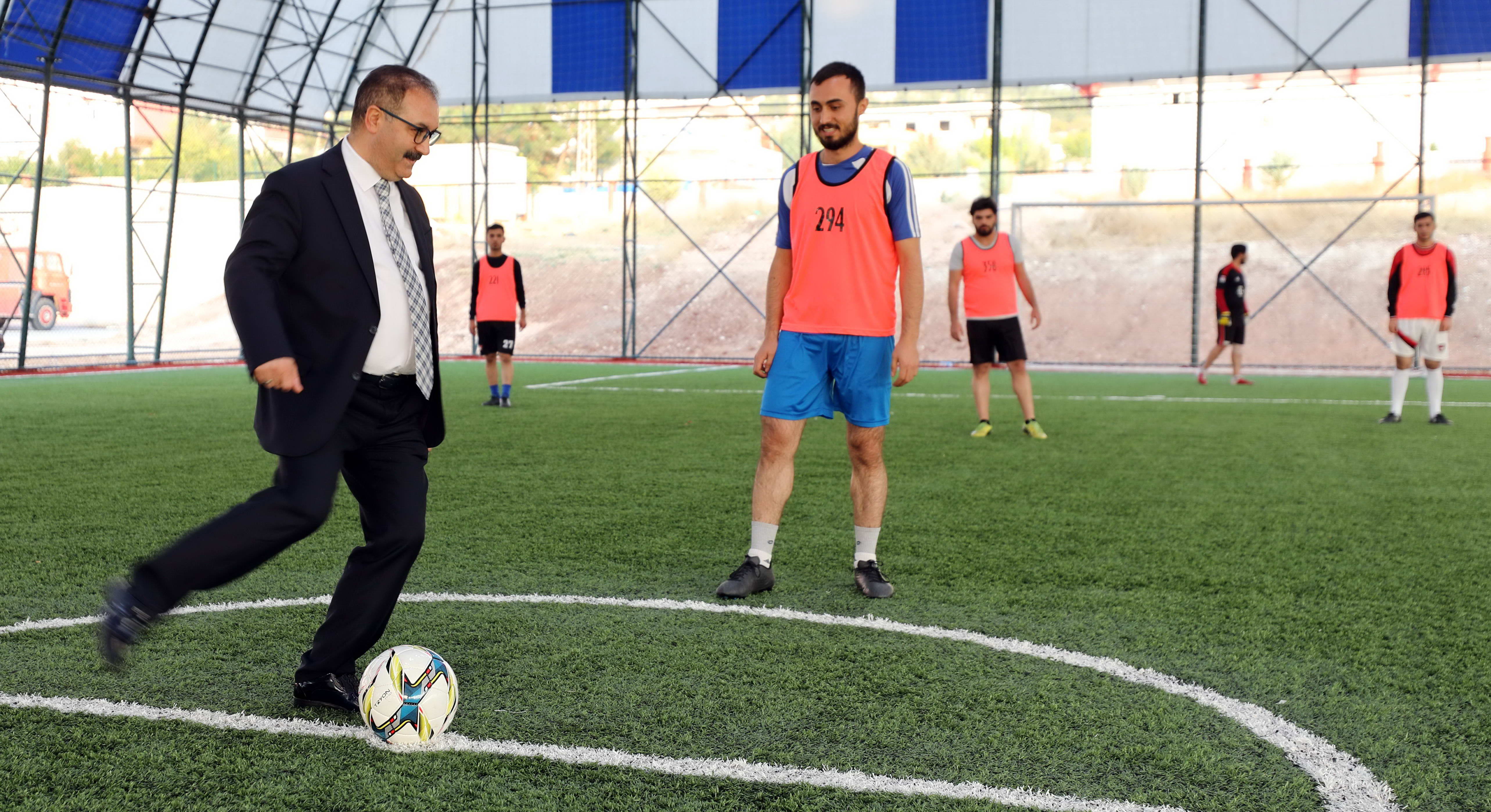 Gaziantep Üniversitesi (GAÜN) Oğuzeli Meslek Yüksekokulu halı saha açılış töreni Rektör Prof. Dr. Ali Gür’ün başlama vuruşuyla ilk futbol maçı yapıldı.