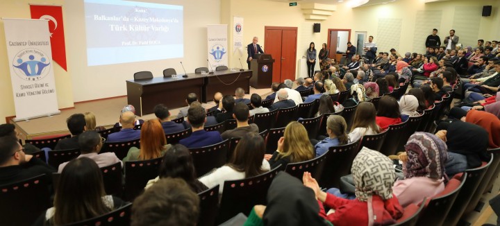 Osmanlı’nın çekilmesiyle Balkanlar’da kalan grupların çeşitli sıkıntılarla yüzleştiğine işaret eden Kuzey Makedonya Vizyon Üniversitesi Rektörü Prof. Dr. Fadıl Hoca, konuşmasının devamında ise şunları söyledi: “Osmanlı çekilince, gidebilenler gitmiş, gidemeyenler maalesef kalmış. Biz bu Serhat boylarında kaldık. Ve yüz yılı aşkın bir süredir hiç boyun eğmeden yaşantımızı sürdürüyoruz. Ecdadımız buradan çekilirken bize iki cevherimizi emanet etti. Bir, dinimiz İslam, iki dilimiz Türkçe. Biz ne İslam’dan ne de Türkçeden taviz verdik. Değişik sistemlerden geçtik, krallık sistemi, komünist sistem ve demokrasi sistemi. Sayımız az olabilir ama biz hep bu iki cevherimizi koruduk ve çocuklarımıza emanet olarak bıraktık. Balkanlar’da Türk olarak yaşamak zor mudur? Bir kere, azınlık olarak yaşamak daima zordur. Hele Balkanlar’da azınlıksanız daha da sıkıntı olur. Fakat biz bu ‘Balkanlar’ denilen dalgalı denizde iyi yüzmeyi öğrendik. Balkanlar denilen bu denizde iyi yüzmeyi beceremeyen maalesef dalgalara kapılıp gider, asimile olur. Önceki dönemde bize yönelik asimile çalışmaları da oldu. Ama, o zor dönemler artık geride kaldı.”