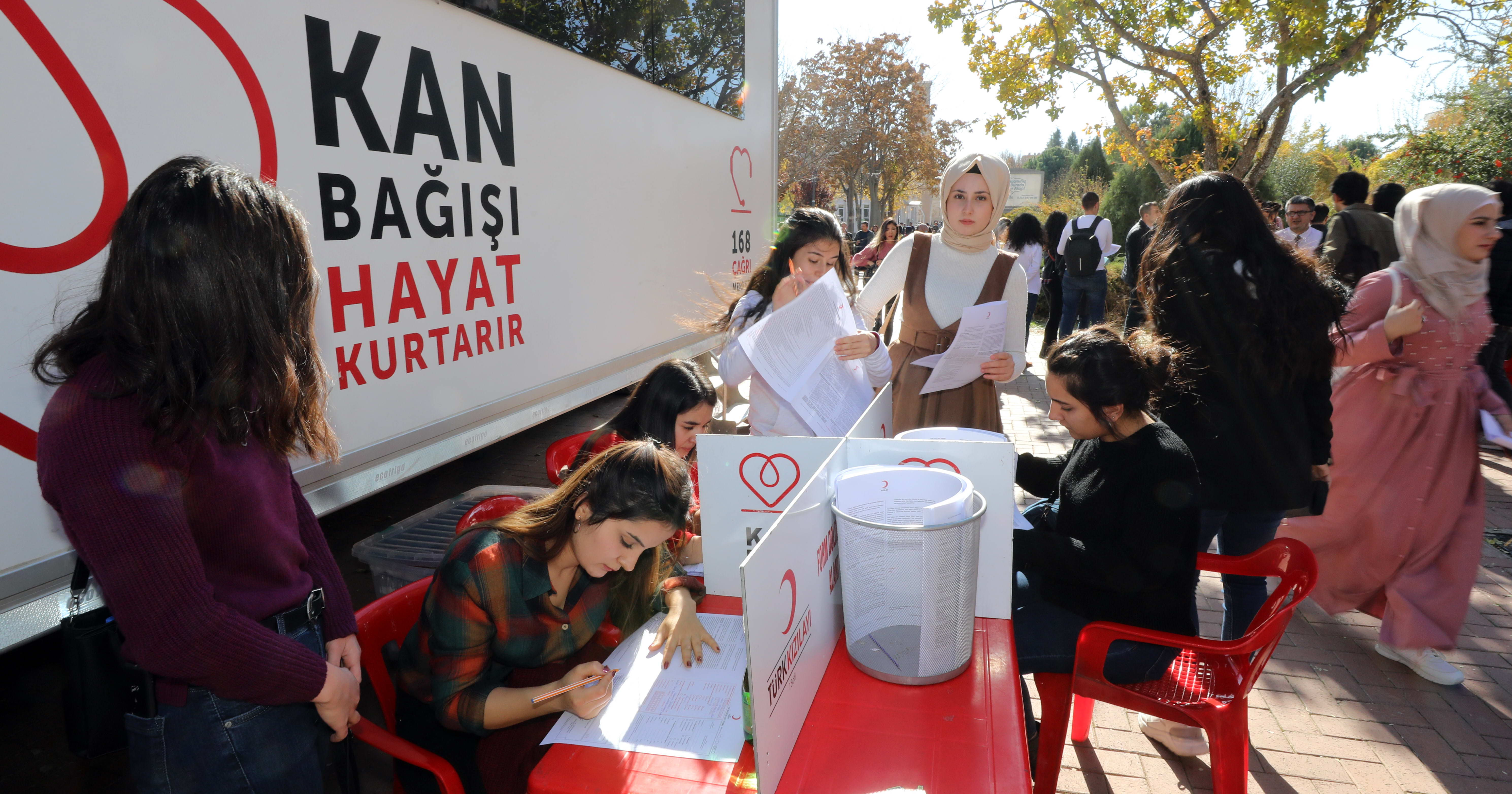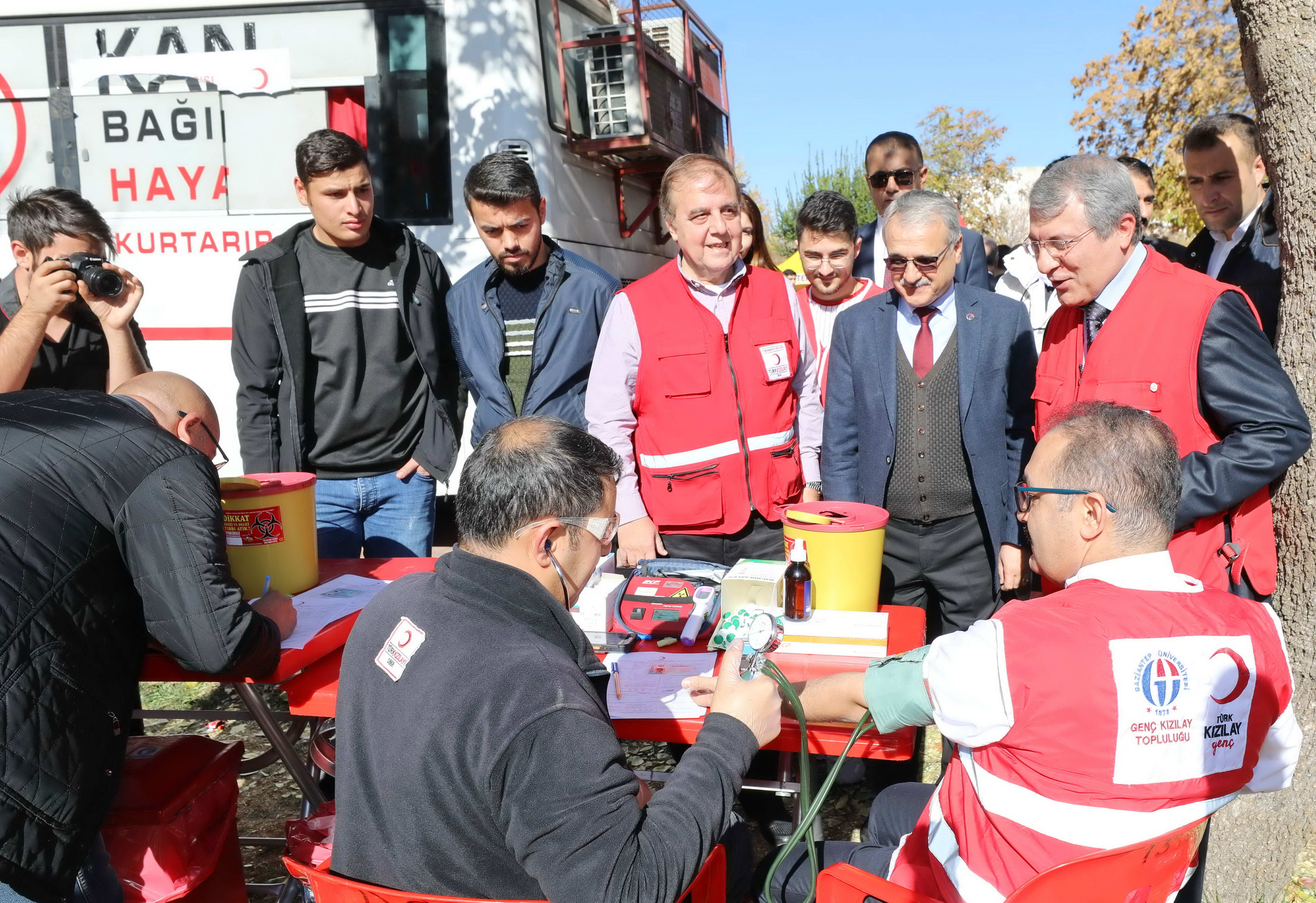 Gaziantep Üniversitesi (GAÜN) Genç Kızılay Topluluğu tarafından GAÜN Merkezi Yemekhane Önünde gerçekleştirilen kan bağışı kampanyasına katılan Rektör Prof. Dr. Ali Gür, kan bağışında bulunarak kampanyaya destek verdi.