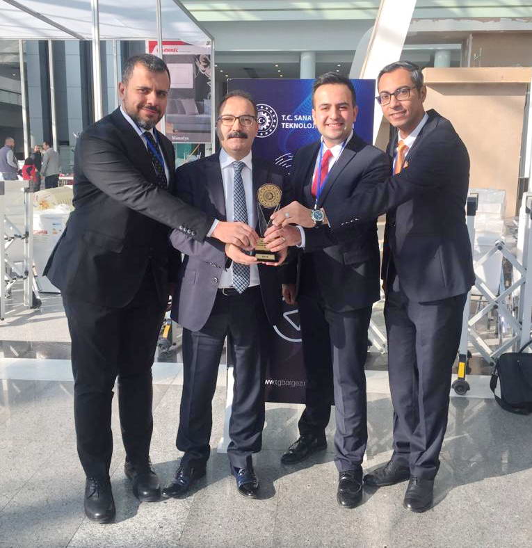 Ödülü Sanayi ve Teknoloji Bakanı Mustafa Varank’ın elinden Rektör Gür ve Genel Müdür Tekin aldı