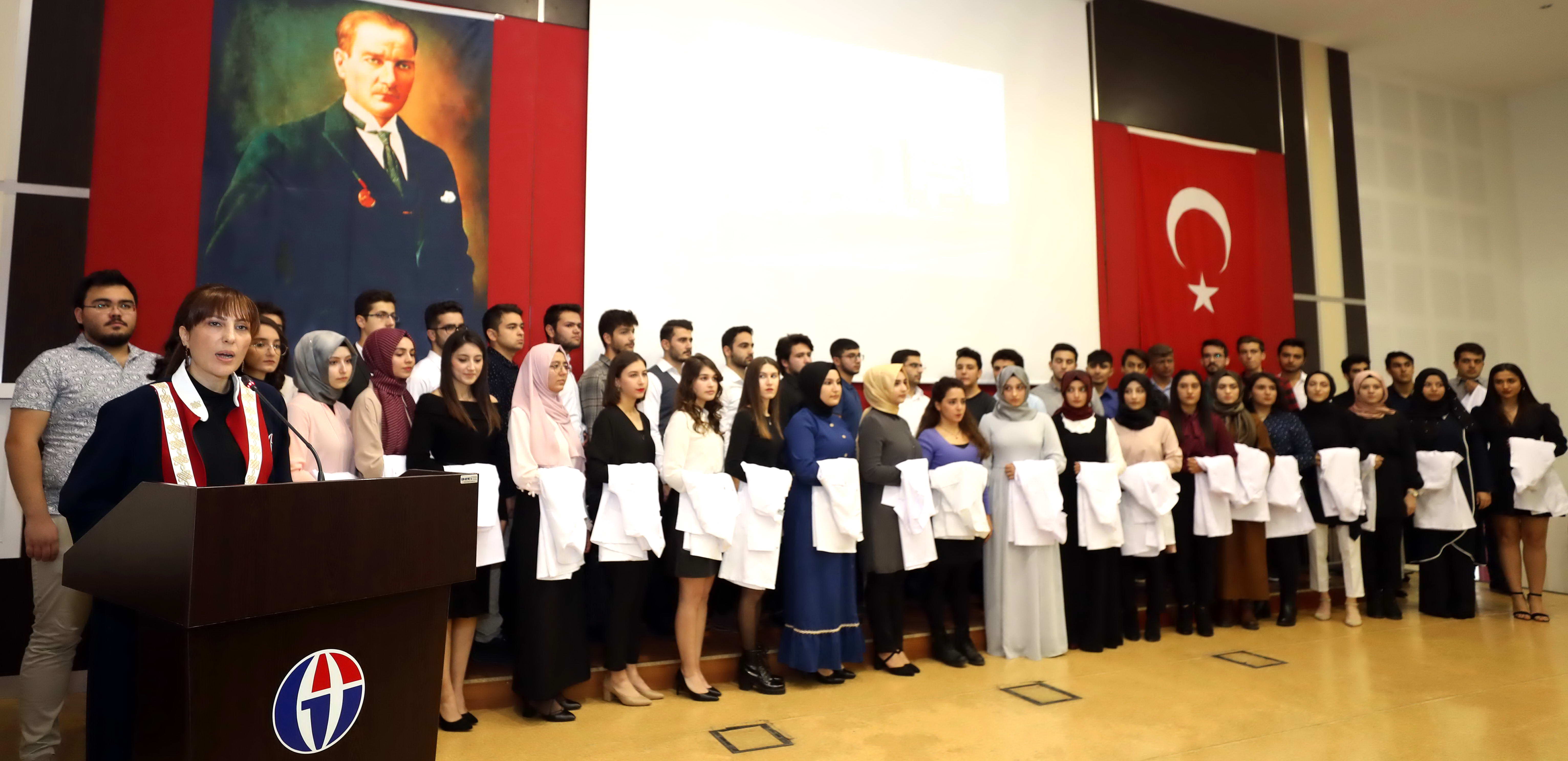 GAÜN Diş Hekimliği Fakültesi Dekanı Prof. Dr. Kamile Erciyas ise, Diş hekimliğinin yalnızca bir meslek olmadığını; diş hekimliğinin hekimlik, bilim, sanat, estetik ve tüm bunların ötesinde bir yaşam biçimi olduğunu vurguladı. Prof. Dr. Erciyas, “Beyaz önlük giyme töreni, hekim olma yolunda atacağınız ilk adımınız olacaktır. Önemli ve itibarlı bir mesleğin mensubu olup hayallerinizi gerçekleştirmek için iyi imkanlara sahip olacaksınız. Ama bunlardan hiçbirisi iyi bir insan olmaktan daha değerli değil. Hele hekimlik gibi doğrudan insana dokunan bir mesleğin mensupları olarak bu zorlu ve mukaddes yolculukta iyi insan olmayı ihmal etmeyin” şeklinde konuştu.