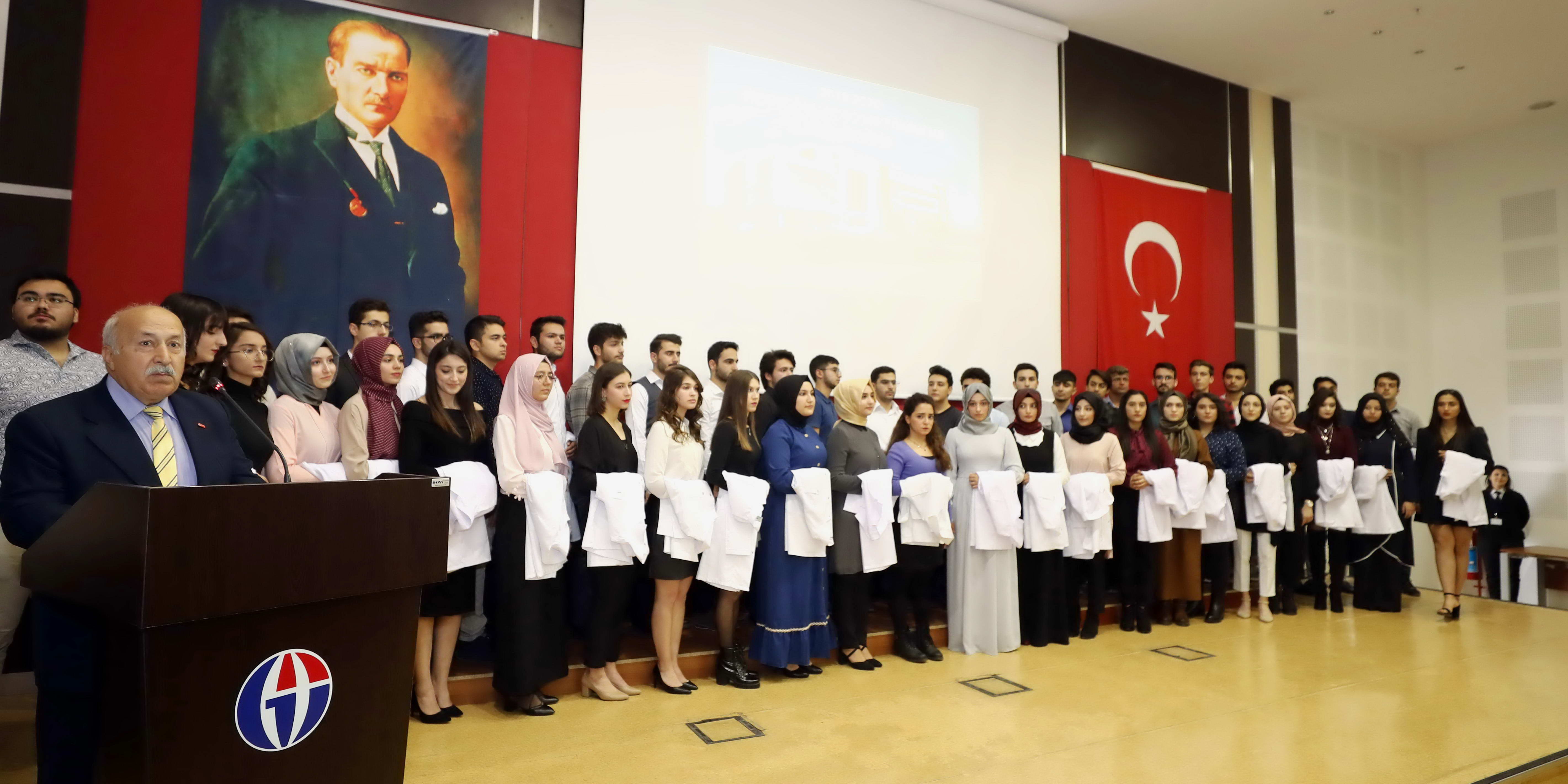 Konuşmaların sonrasında, Rektör Prof. Dr. Ali Gür, Rektör Yardımcısı Prof. Dr. M. Avni Gökalp, Diş Hekimliği Fakültesi Dekanı Prof. Dr. Kamile Erciyas, Gaziantep Diş Hekimleri Odası Başkanı Hasan Karabay ve akademisyenlerin öğrencilere önlüklerini giydirdiği törene öğrencilerin aileleri de katıldı.