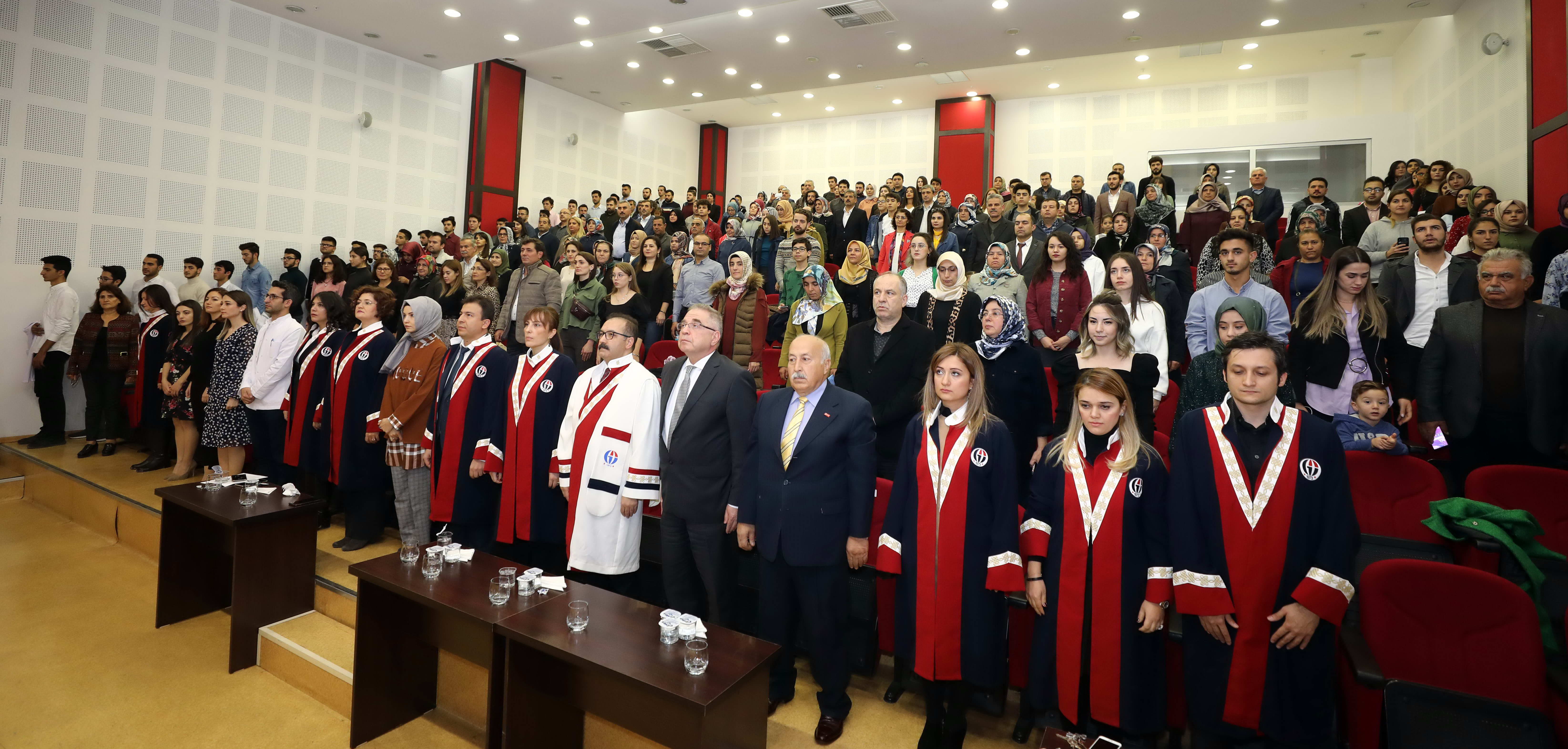 GAÜN Diş Hekimliği Fakültesi Konferans Salonu’nda gerçekleştirilen törenin açılışında konuşan GAÜN Rektörü Prof. Dr. Ali Gür, “Pırıl pırıl gençlerimiz çok yorucu bir maratondan sonra bileklerinin hakkıyla Türkiye’nin önemli üniversitelerinden birisinde, diş hekimi olmak üzere eğitim almak için buraya geldiler. Laboratuvar şartları, hocaları ve bağımsız bir binasıyla kaliteli eğitim veren bir üniversitede oldukları için ayrıca şansları var. Pratik uygulama açısından çok donanımlı bir üniversitedeler. İstiyoruz ki burada her şeyiyle mükemmel yetişsinler” diye konuştu.