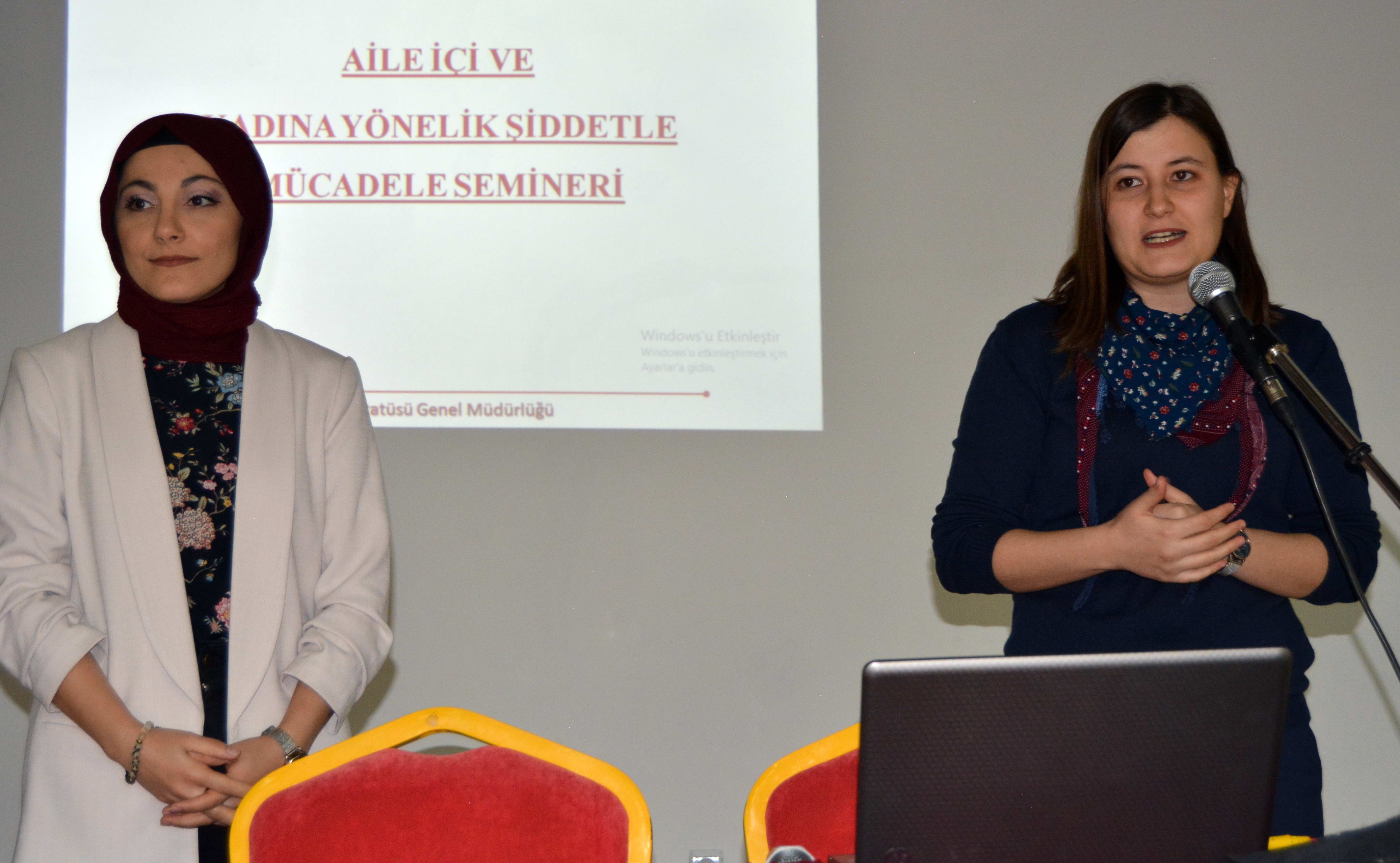 Seminerde aile içi ve kadına şiddetin nedenleri, şiddetin tanımları, türleri, çocuklar üzerindeki etkileri, aile içi ve kadına şiddetle mücadele konusundaki mevzuat ile aile içi ve kadına şiddet konusunda hizmet veren kurum ve kuruluşlar konusunda bilgi verildi. Soru cevap şeklinde tamamlanan seminer sonunda Dr. Öğretim Üyesi Mehmet Cevat Yıldırım konuşmacılara çiçek takdim etti.
