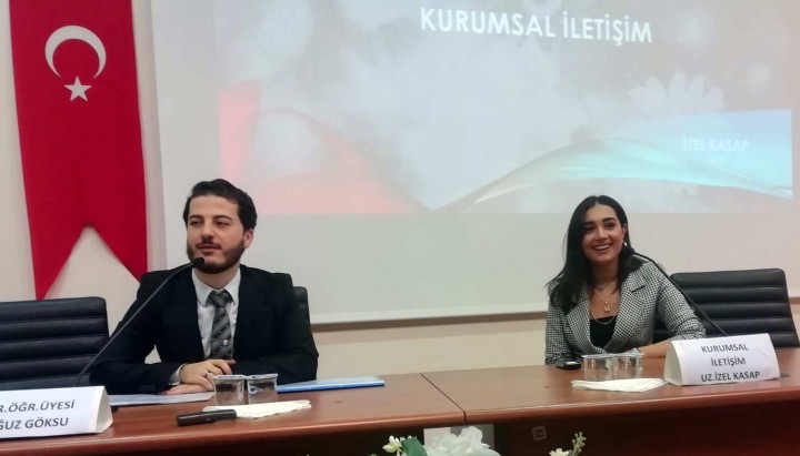 GAÜN İletişim Fakültesi Öğretim elemanlarından Dr. Öğretim Üyesi Oğuz Göksu’nun moderatörlüğünde GAÜN Eğitim Fakültesi Konferans Salonu’nda gerçekleştirilen söyleşide Kurumsal İletişim Uzmanı İzel Kasap; kendi yaşamından yola çıkarak, kurumsal iletişim sektörü ve öğrencilerin derste gördükleri süreçlerden kurum için örnekler verdi.