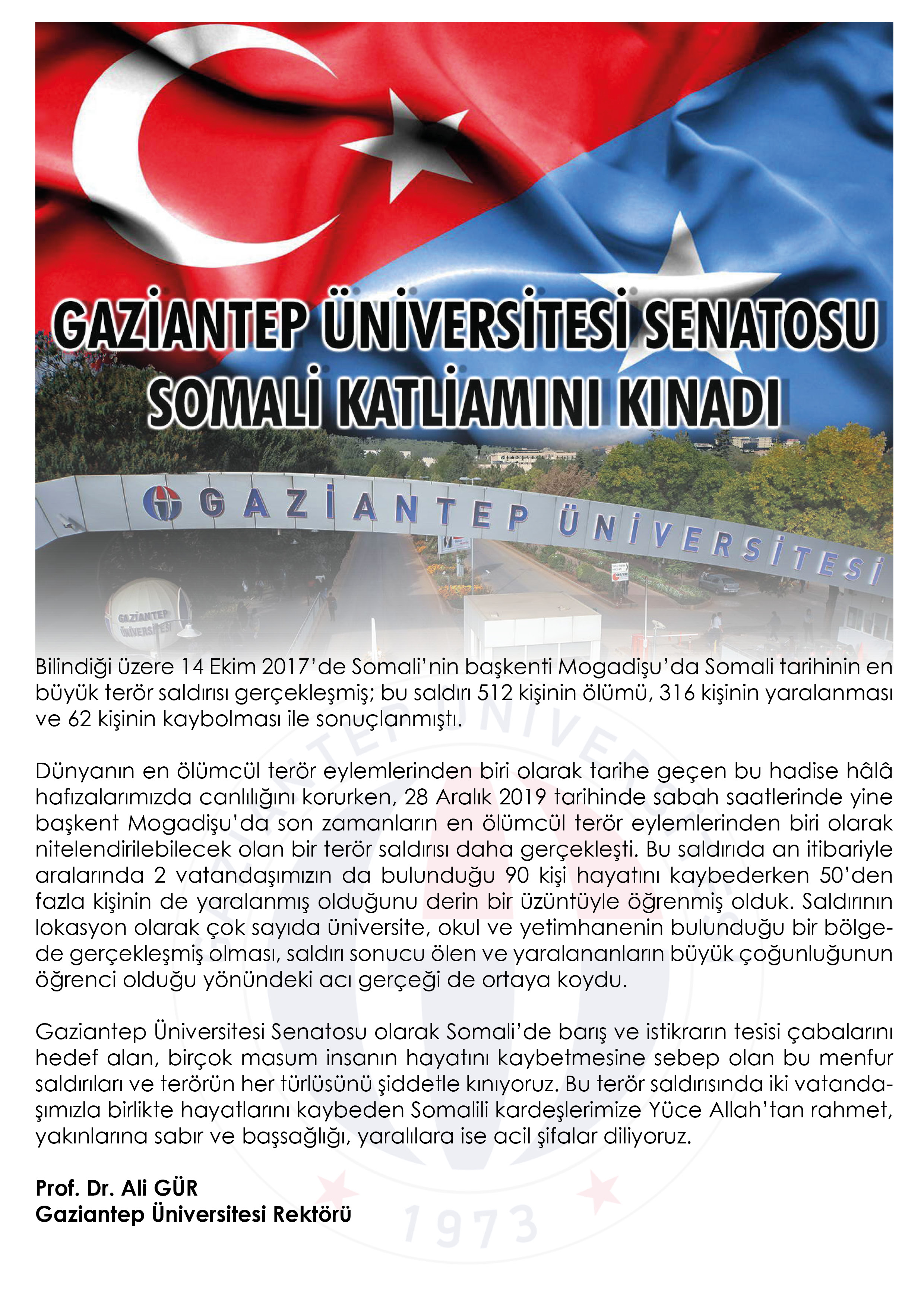 GAZİANTEP ÜNİVERSİTESİ SENATOSU SOMALİ KATLİAMINI KINADI