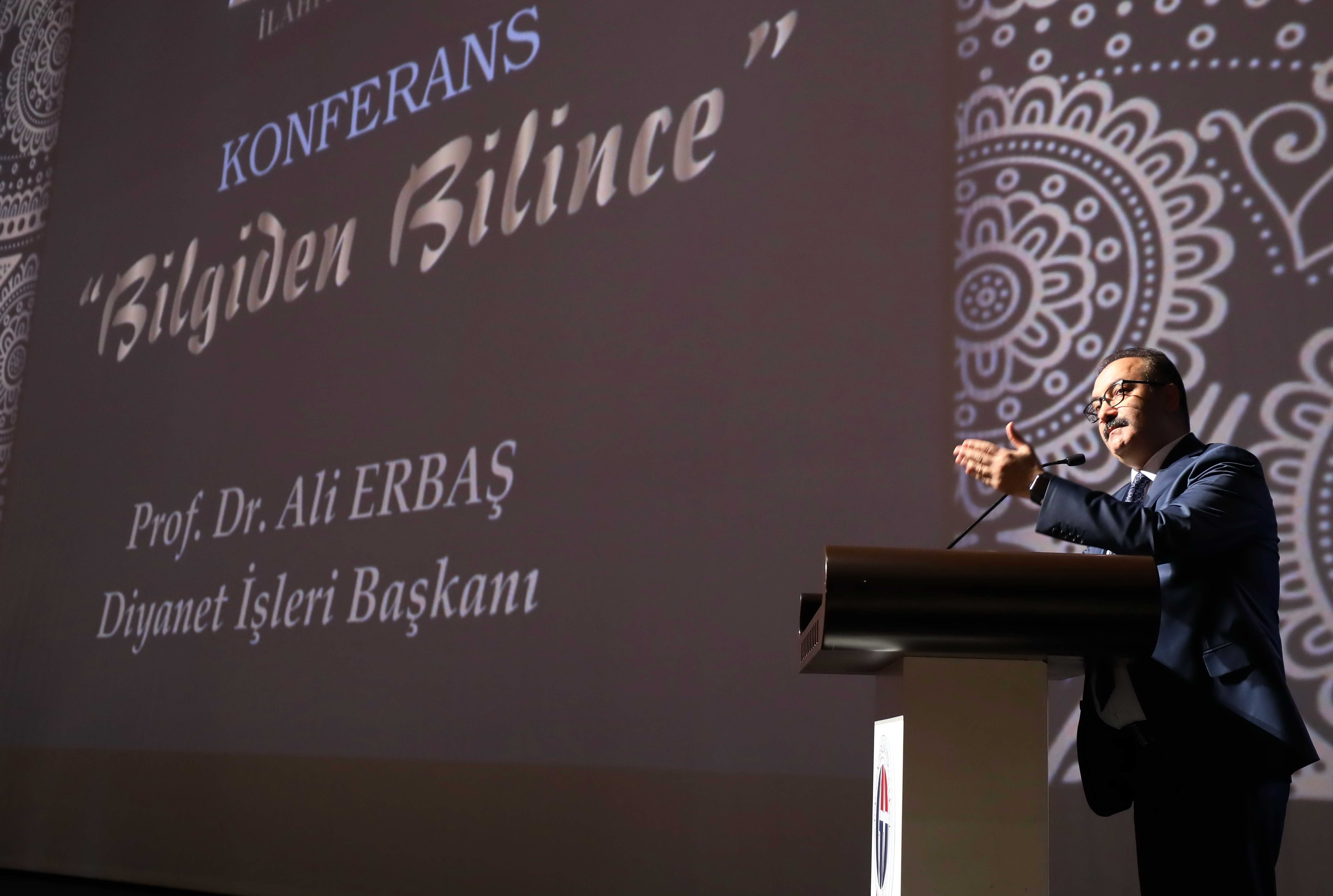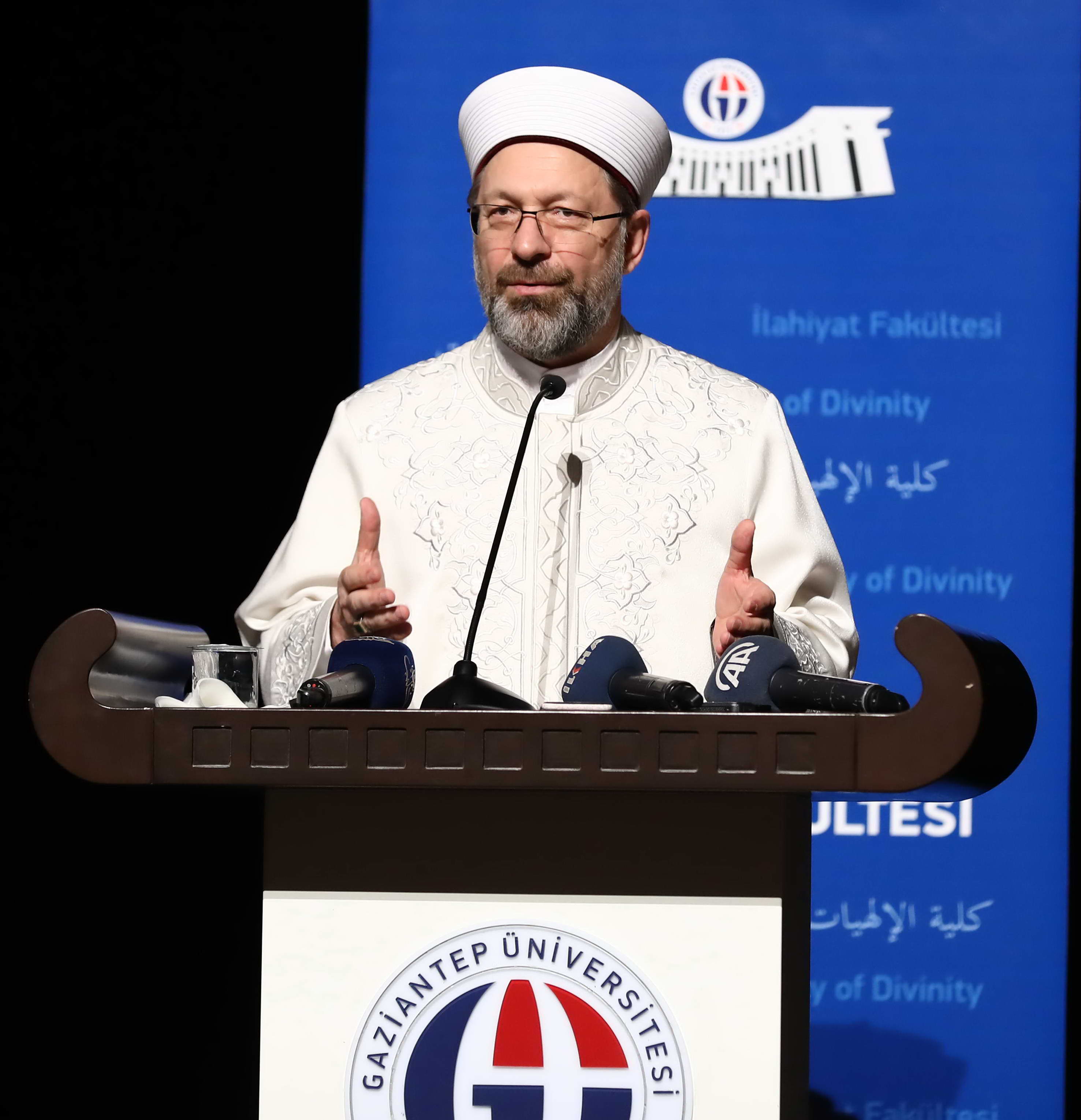 Erbaş tarafından Gaziantep Üniversitesi (GAÜN) Mavera Kongre ve Sanat Merkezi’ndeki Bilgiden Bilince Konferansı’nda yaptığı konuşmada, sadece öğrenci olarak bugün anaokulundan üniversiteye kadar 25 milyon öğrenciye sahip olduğumuzu, bunun en büyük zenginliklerimizden birisi olduğunu vurguladı. Prof. Dr. Erbaş, “Dünyada nüfusu 25 milyonun altında olan 143 ülke var. Birkaç yüz bin nüfuslu ülkeden tutunuz da, Çin gibi 1 buçuk milyar, Hindistan gibi 1 milyarı aşkın nüfuslu ülkeler de var. Yani bizim öğrencilerimiz kadar nüfusu olmayan 143 ülke var. İşte biz gençlerimizi iyi yetiştirirsek, maddi ve manevi donanımlarını sağlarsak bizim için değerli olacak. O açıdan buralardayız, üniversitelerimizde hocalarımızla genç kardeşlerimizle beraber olmak bazı konularımızı müzakere etmek bizim için çok önemli” şeklinde konuştu.