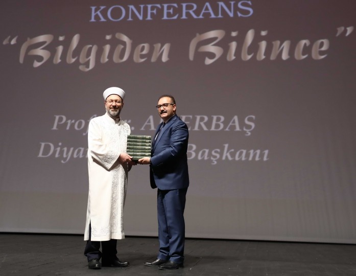 Büyük çoğunluğu Müslüman olan bir toplumda yaşadığımızı aktaran Prof. Dr. Erbaş konuşmasının devamında şunları söyledi: “Son kitabın müntesibi, son Nebi’nin ümmetiyiz. Müslüman olmayanlar da var. Ama, öyle bir birikimimiz, birlikte yaşama tecrübemiz var ki dünyanın her toplumuna örnek olacak niteliktedir. Cumhuriyetin başlarında bile ülkemizde nüfusun yüzde 30 kadarı gayrimüslimdi. 1924 yılındaki mübadelede Türkiye’deki gayrimüslimlerin başka yerlere, başka ülkelerdeki Müslümanların Türkiye’ye getirilmesi şeklinde bir mübadele olmuştu. İşte o zamana kadar asırlar boyunca inancı, mezhebi, düşüncesi, ideolojisi ne olursa olsun barış içerisinde bu topraklarda millet olarak hepimiz yaşamışız. Milletin unsurları Müslüman ve gayrimüslimler olmuş, birbirleriyle komşuluk yapmışlar, zaman zaman akraba da olmuşlar. Dolayısıyla bu da bizim için en büyük zenginliklerden birisidir. Geçmişimizin, medeniyetimizin bu zenginliğinden de biz istifade etmeliyiz ve bugün işte burada şu salonda farklı düşüncelerden kardeşlerimiz olabilir. Herkes düşüncesine tabi ki sahip çıkacak ve ötekileştirmeden medeni ölçüler içerisinde birbirimizle konuşacağız, birbirimizin düşüncesine saygı göstereceğiz. Bu bizim inancımızın temelinde vardır.”