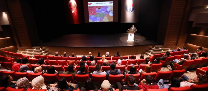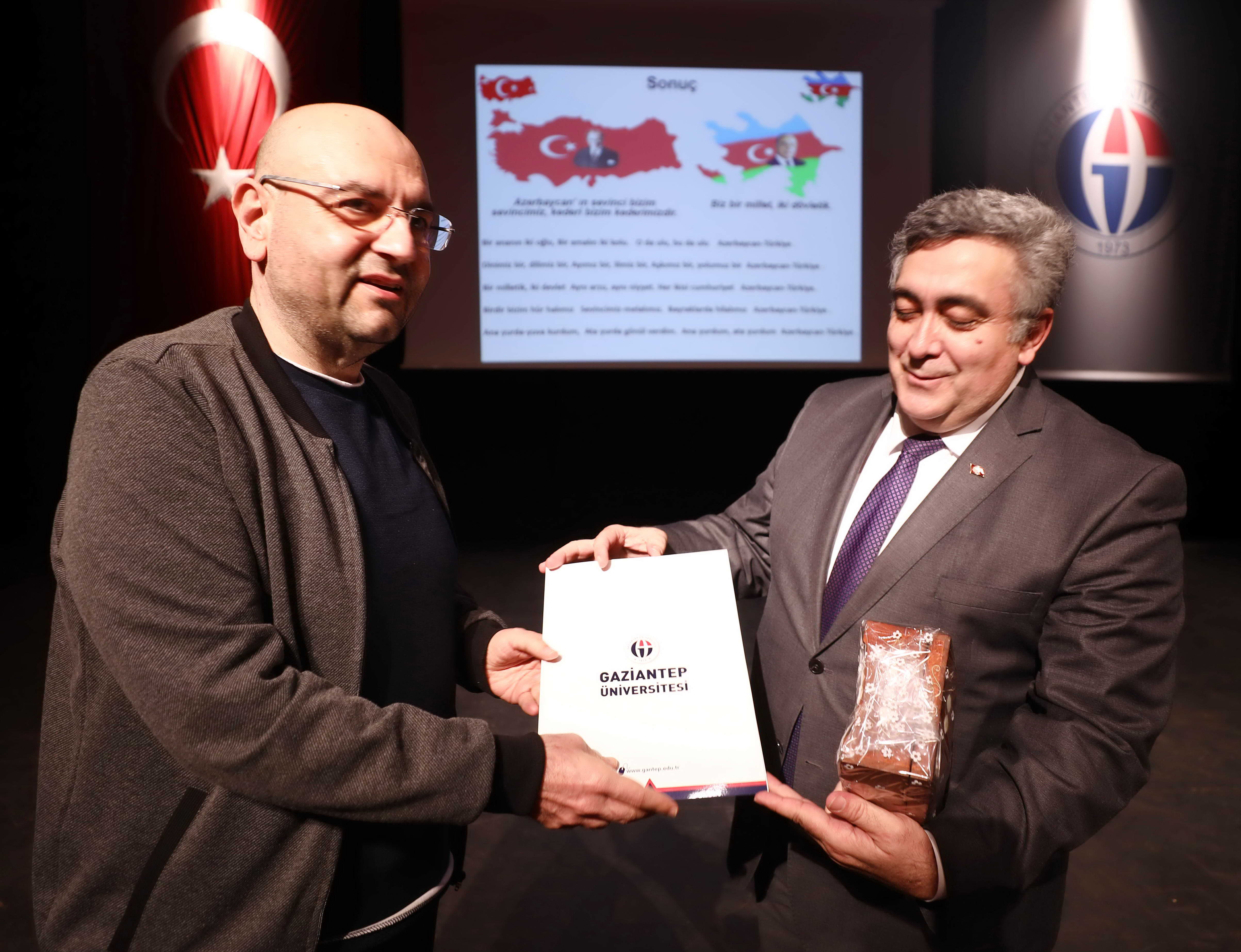Konferans sonunda GAÜN Genel Sekreteri Doç. Dr. Ayhan Doğan ve GAÜN Öğretim Üyesi Doç. Dr. Yunus Emre Tansü tarafından günün anısına Emekli Tuğgeneral Yücel Karauz’a hediye takdim ettiler. Konferansı, GAÜN Rektörü Prof. Dr. Ali Gür’ün yanı sıra çok sayıda öğrenci ilgiyle dinledi.
