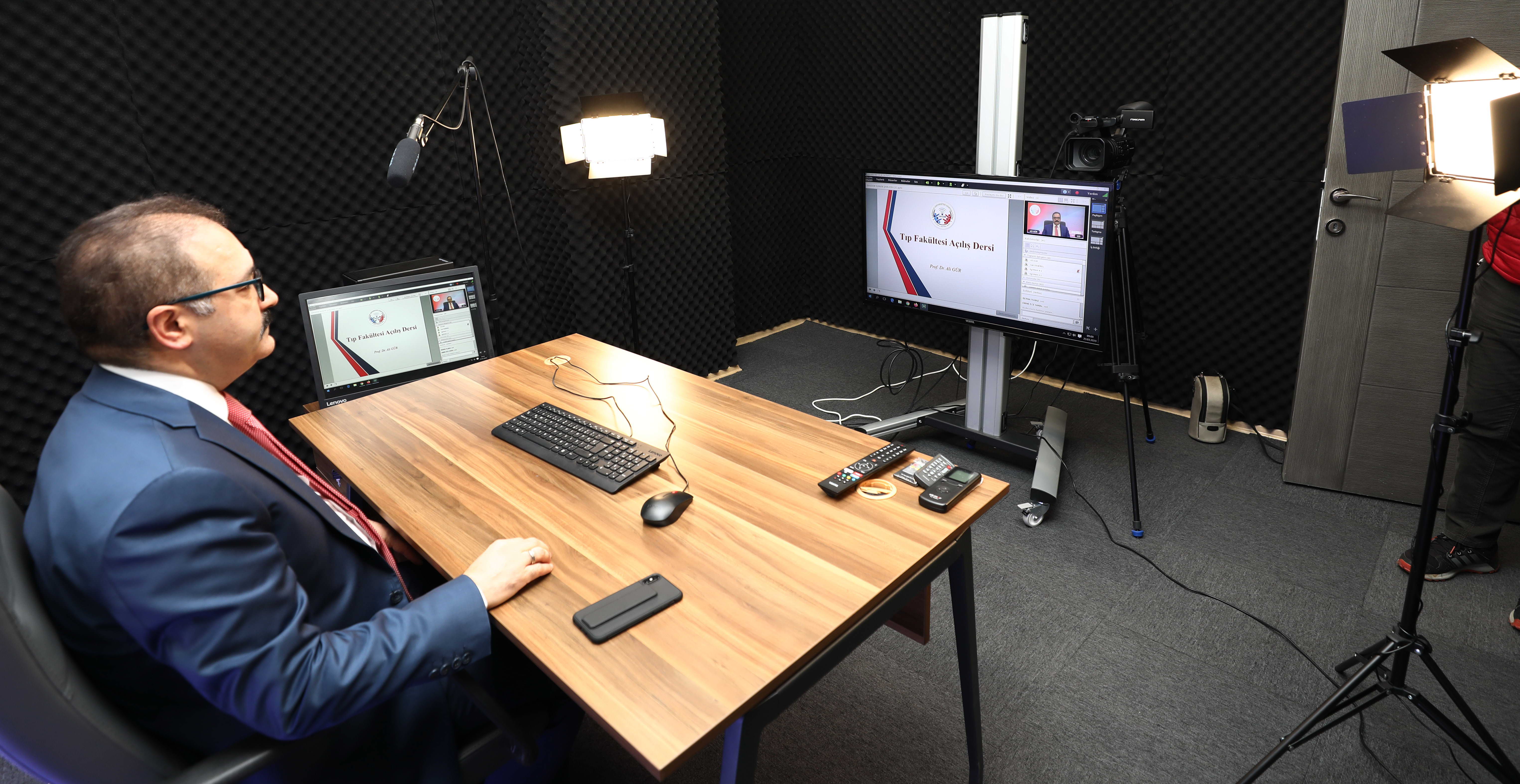 Uzaktan öğretim programlarının açılış dersi de Rektör Prof. Dr. Ali Gür tarafından verildi. Tıp Fakültesi öğretim üyesi olan Rektör Gür, Tıp Fakültesi 1. sınıf öğrencileri ile yaptığı açılış dersinde, eğitimin öneminin her şart ve durumda yeniden ortaya çıktığını vurgulayarak konuşmasına başlayıp, öğrencilerin eğitim süreçlerinin aksamaması için ne gerekiyorsa yapacaklarını belirtti. Planlamalar çerçevesinde üniversitenin canlı sınıf odalarıyla aynı anda yüzlerce dersi eşzamanlı olarak yürütebileceği, altyapı hazırlıklarının son bir haftada aynı anda binlerce öğrencinin hizmet alacağı şekilde geliştirildiğini belirtti. Gür, içerik geliştirme ve uzaktan öğretim platformuna ekleme konusunda öğretim elemanlarının hazırlandığını ve bu sürecin bir ürünü olarak öğrencilerin karşısında olmanın haklı sevincini yaşadığını ifade ederken şunları söyledi: “Kısa süre içerisinde 200’ün üzerinde sanal sınıf ve 50 bin öğrencinin erişebileceği bir alt yapı sağlandı. Sisteme tüm birim ve hocalarımız dahil edilerek aktif destek verilmesi konusunda gerekli tedbirler alındı. Ayrıca, görme ve işitme engelli öğrencilerimizin de sisteme dahili için çalışmalarımızı sürdürüyoruz” dedi.