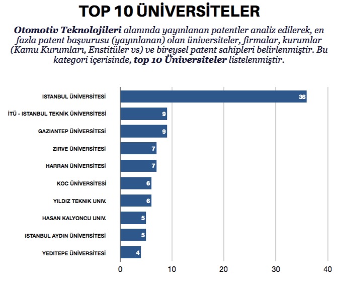 Teknoparkların patent performanslarına göre değerlendirildiği listede ise Gaziantep Üniversitesi bünyesinde bulunan Teknopark Gaziantep’in, 27 ‘Patent/Faydalı Model’ başvurusuyla 10. sırada yer alma başarısını gösterdiğinin altını çizen Rektör Prof. Dr. Ali Gür, açıklamasının devamında şunları söyledi: “Üniversitemiz teknolojilerin kategoriler halindeki değerlendirmesinde de başarılı sonuçlar aldı. Nitekim, Havacılık Teknolojileri Kategorisi’nde 9 başvuruyla ‘Top 10 Üniversiteler’ sıralamasında 1.Otomotiv Patent Başvurusu değerlendirmesindeki İTÜ ile birlikte 9 patent başvurusu yaparak 2. olduk. Üniversitemiz Gıda- İçecek Teknolojileri Kategorisi’nde de yedinci olma başarısını gösterdi. Gerek, otomobil, gerekse havacılık sektörünün günümüzdeki önemi dikkate alındığında Üniversitemiz Teknoloji Transfer Ofisi’nin elde ettiği başarının önemi bir kez daha ortaya çıkacaktır.”