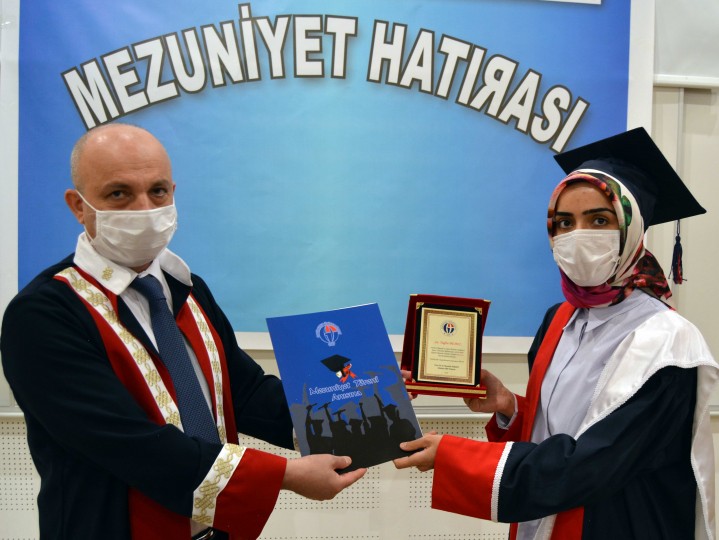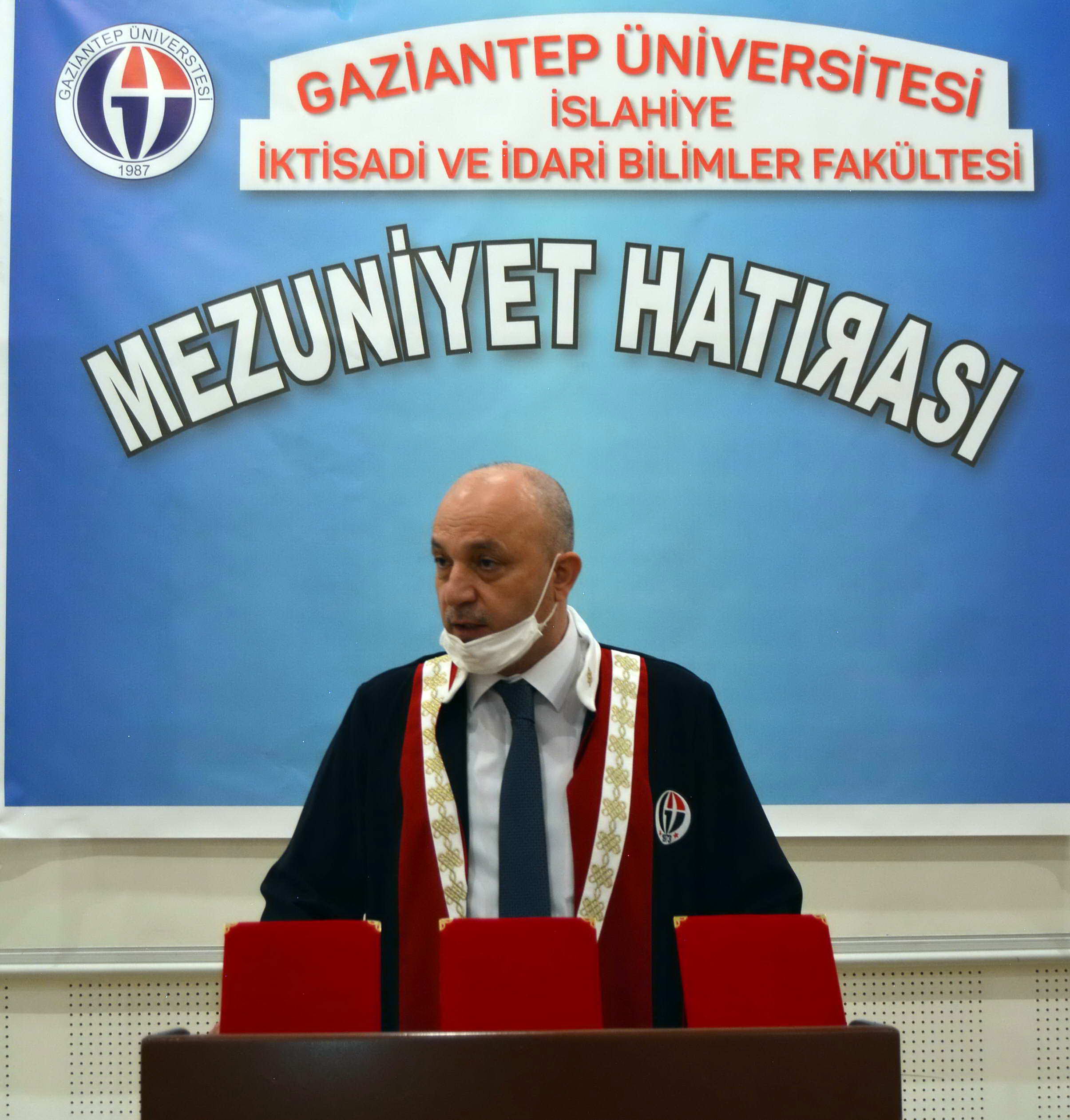 GAÜN İslahiye Yerleşkesi’nde yapılan mezuniyet törenine fakülte öğrencilerini temsilen derece yaparak birinci, ikinci ve üçüncü olan öğrenciler ile aileleri, maske ve sosyal mesafe kurallarına uyarak katıldı.
