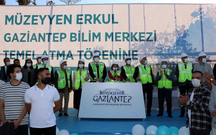 Türkiye’de yerel yönetimler bazında “Gaziantep Modeli” ile hayata geçirilen projelere bir yenisi daha eklendi. Büyükşehir Belediyesi, TÜBİTAK, Gaziantep Üniversitesi (GAÜN), Erkul Ailesi iş birliğinde kente kazandırılacak 14 bin 590 metrekare kapalı alana sahip “Müzeyyen Erkul Bilim Merkezi” için Büyükşehir Belediye Başkanı Fatma Şahin, Erkul Kozmetik A.Ş. temsilcisi Sabri Odabaşı, TÜBİTAK Toplum ve Bilim Dair Başkanı Bekir Çengelci, GAÜN Rektörü Prof. Dr. Arif Özaydın, Gaziantep AK Parti milletvekillerinden Nejat Koçer, Mehmet Erdoğan, Derya Bakbak, Gaziantep Ticaret Odası Başkanı Adnan Ünverdi, Hasan Kalyoncu Üniversitesi Rektörü Prof. Dr. Türkay Dereli ve öğrencilerin katılımıyla temel atma töreni gerçekleşti.