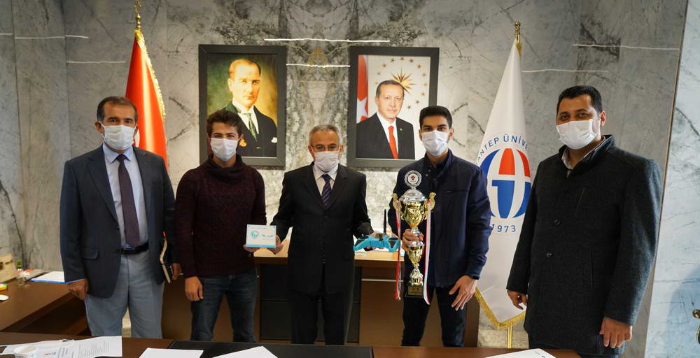 TEKNOFEST 2020’de TÜBİTAK Uluslararası İnsansız Hava Araçları Yarışması’nda ‘Sabit Kanat’ kategorisinde 55 finalist takım içerisinde mansiyon ödülünü kazanan Gaziantep Üniversitesi (GAÜN) Elektrik Elektronik Mühendislik Bölümü öğrencilerinden oluşan ‘Hidden Danger’ takımı, Rektör Prof. Dr. Arif Özaydın’ı makamına ziyaret etti. GAÜN Rektörlük makamında öğrencilerle bir araya gelen Rektör Prof. Dr. Arif Özaydın, Gaziantep Üniversitesi’nde İHA alanında mansiyon ödülünü alan öğrencileri tebrik ederek…