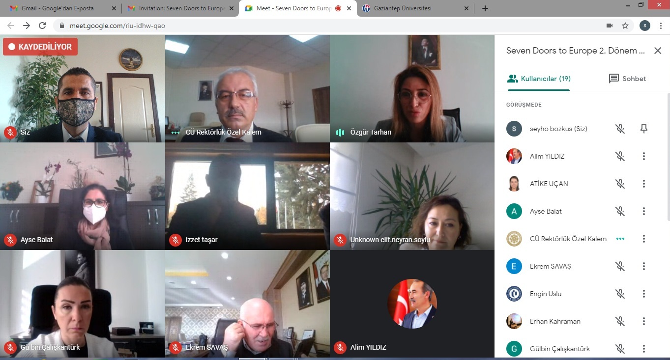 Gaziantep Üniversitesi Rektör Yardımcısı ve Erasmus+ Kurum Koordinatörü Prof. Dr. Ayşe Balat’ın da katıldığı toplantıda, Gaziantep Üniversitesi olarak Erasmus ofislerinin her zaman destekçileri olacaklarını belirten Prof. Dr. Balat, salgın sonrasında yapılacak ilk toplantıya Gaziantep’te ev sahipliği yapmaktan mutluluk duyacağını söyledi. Toplantıda, Uşak Üniversitesi tarafından protokol sunumu yapılarak, salgın sürecinde projenin uygulanması konusunda bilgi verildi. Önümüzdeki günlerde de konsorsiyumun işleyiş süreçlerini belirlemek üzere yeniden bir toplantı yapılacak.