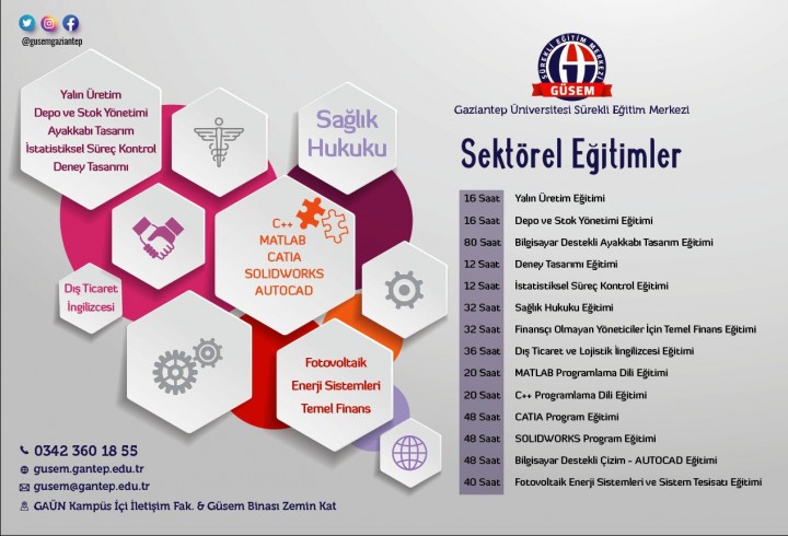 Üniversite-şehir entegrasyonuyla, Üniversite-sanayi işbirliğinin sağlanmasında önemli katkılar sağlamayı amaç edinen Gaziantep Üniversitesi Sürekli Eğitim Merkezi (GÜSEM) açtığı kurslar ve ikili işbirlikleriyle yeni yılda hedef büyüttü.