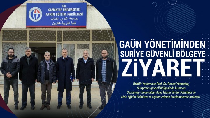 Gaziantep Üniversitesi (GAÜN) Rektör Yardımcısı Prof. Dr. Recep Yumrutaş, Suriye’nin güvenli bölgesinde bulunan Gaziantep Üniversitesi Azez İslami İlimler Fakültesi ile Afrin Eğitim Fakültesi’ni ziyaret ederek incelemelerde bulundu.