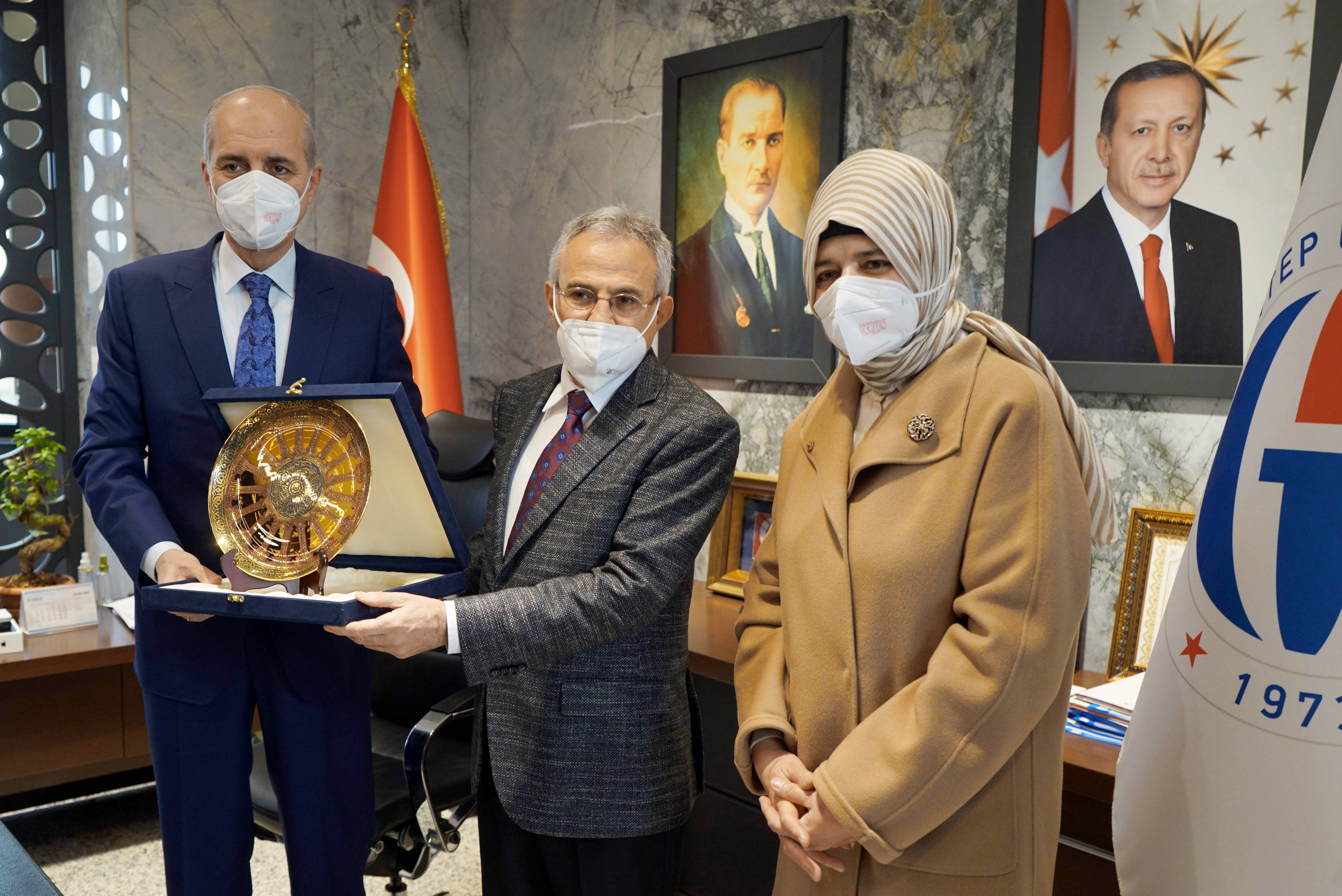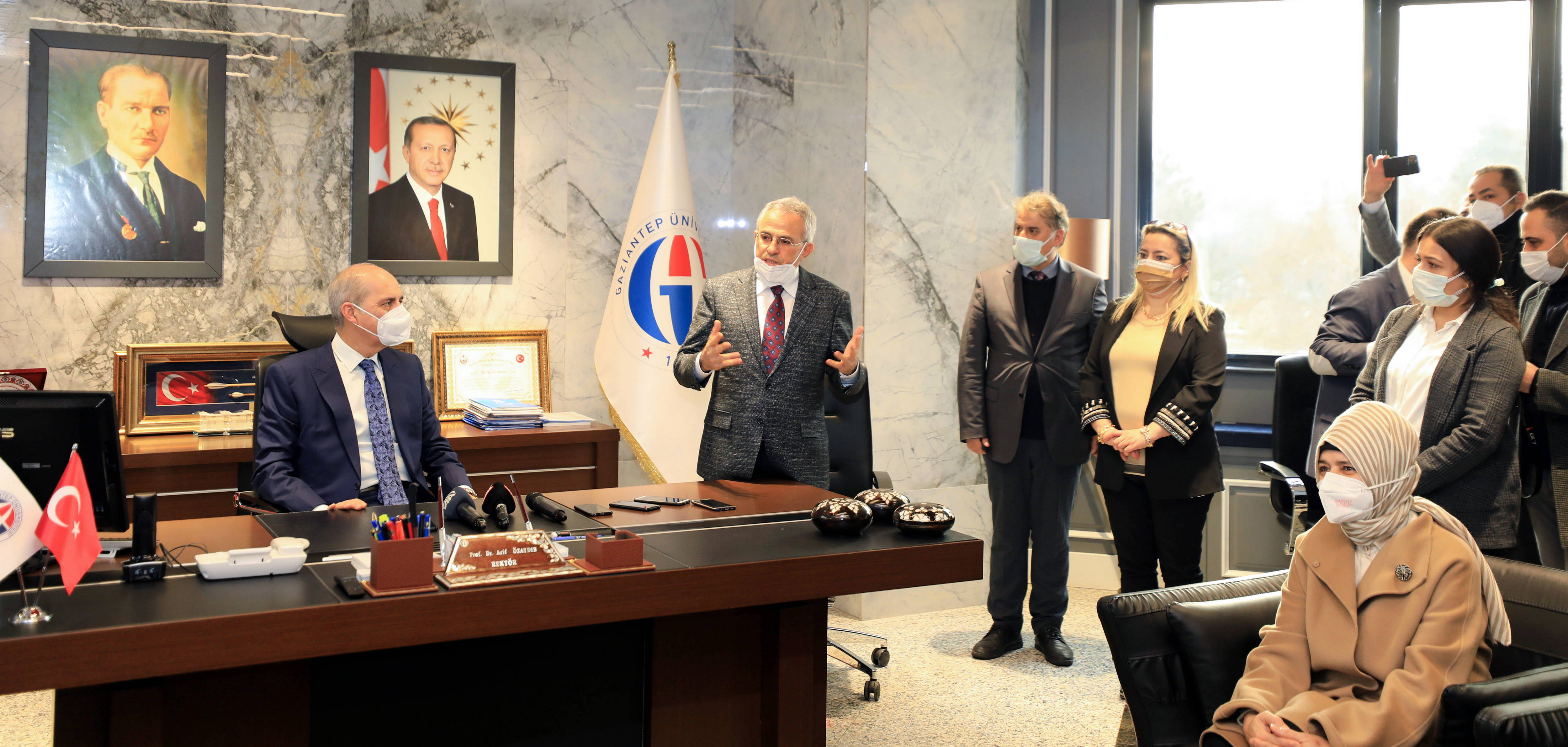 GAÜN Rektörlük makamında gerçekleşen ziyarette; AK Parti Genel Başkanvekili Numan Kurtulmuş ve eşi Sevgi Kurtulmuş’un yanı sıra GAÜN Rektörü Prof. Dr. Arif Özaydın, Ak Parti Gaziantep Milletvekilleri Derya Bakbak, Mehmet Erdoğan,  Nejat Koçer, Ahmet Uzer, Müslüm Yüksel, Gaziantep Büyükşehir Belediye Başkanı Fatma Şahin, Şahinbey Belediye Başkanı Mehmet Tahmazoğlu, GAÜN Rektör Yardımcıları Prof. Dr. Recep Yumrutaş ve Prof. Dr. Ayşe Balat da katıldı.