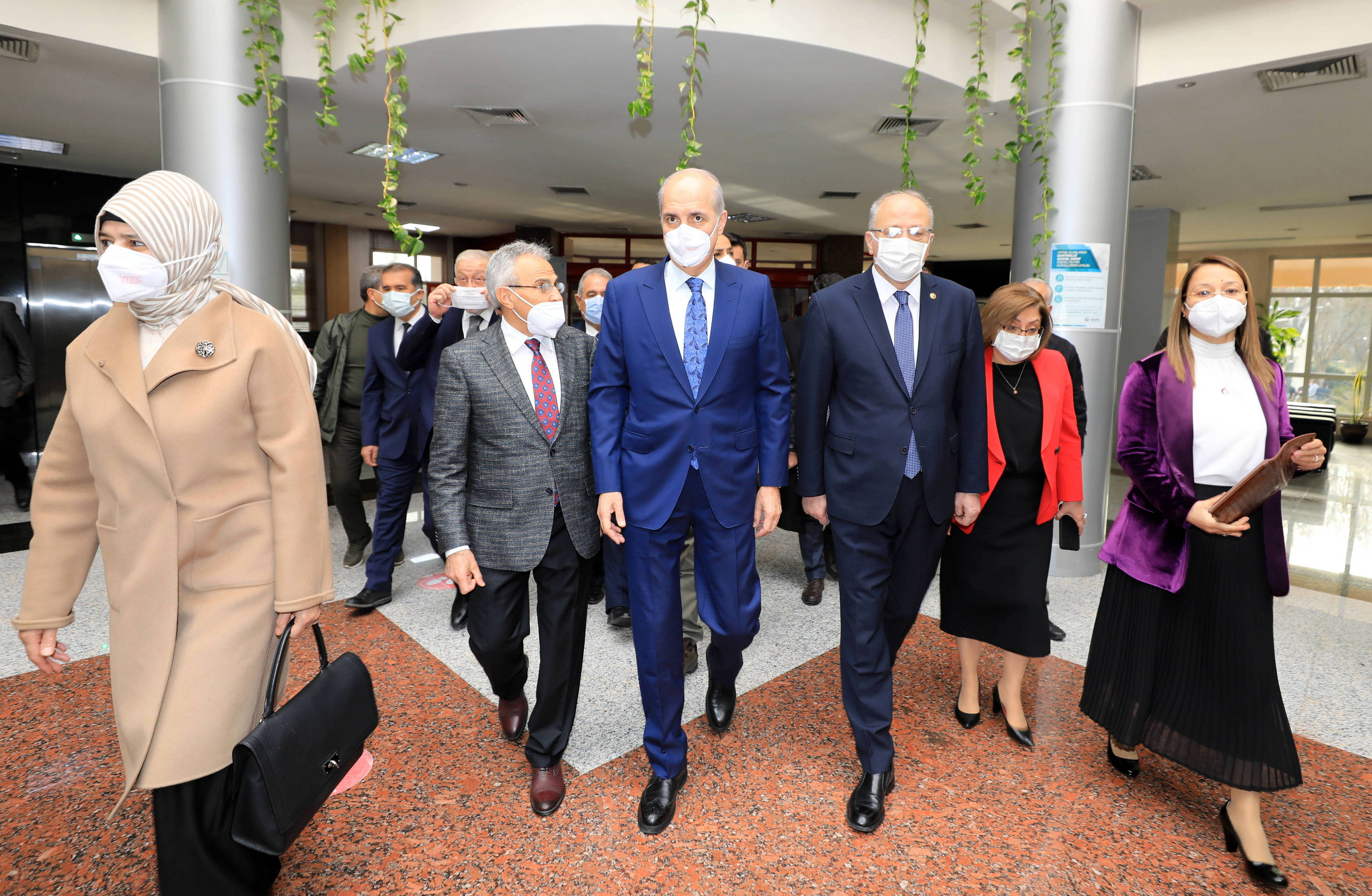 Dünyanın bütün gelişmiş ülkelerinde sanayinin, yüksek teknolojilerin gelişmesinin, toplumsal hayattaki gelişmelerle birlikte üniversitelerin gelişmesinin eş zamanlı olarak devam ettiğini kaydeden Kurtulmuş, bu anlamda da Türkiye’nin ne kadar geliştiğinin göstergelerinden birisinin de üniversitelerimiz olduğuna işaret etti. Kurtulmuş konuşmasının devamında şunları söyledi: “Son günlerdeki tartışmalar çerçevesinde de bunu söylemek istiyorum. Türkiye’nin saygın üniversitelerinden birisinin her gün gösterilerle, bir takım tartışmalarla, provokasyonlarla anılmasının doğru olmadığını bir kez daha ifade etmek istiyorum. Üniversiteler bilim yeridir, fikirlerin tartışıldığı yerdir. İnsanların makaleleriyle, araştırmalarıyla, projeleriyle, tezleriyle, görüşleriyle birbirleriyle yarıştığı yerlerdir. Bu hale getirmek de hepimizin vazifesi. Başta üniversite rektörlerimiz, hocalarımız, öğrenci kardeşlerimiz olmak üzere hepimizin vazifesidir. Bu anlamda İnşallah Türkiye’nin üniversitelerini daha ileride göreceğiz. Bunun içinde üniversiteleri bazılarının kirli siyasetleriyle, kullandıkları zehirli dillerle kirletmelerine, meşgul etmelerine Türkiye’nin takati yoktur. Türkiye’nin buna müsamahası yoktur. Kaybedecek vaktimiz de yoktur. Üniversitelerimizin tamamının çok daha ileriye gitmesi için mücadele etmemiz gerekiyor. Prof. Dr. Arif Özaydın’ a ve bütün çalışma arkadaşlarına üstün başarılar diliyorum.”