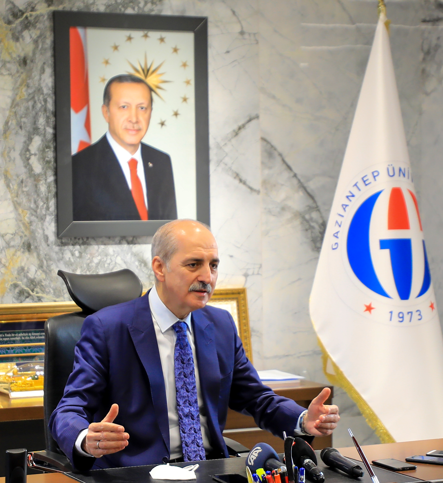 AK Parti Genel Başkanvekili Numan Kurtulmuş konuşmasına şu sözlerle devam etti: “Biz üniversitelerimizin hem öğretim üyeleriyle hem öğrencileriyle, yayınlarıyla, araştırmalarıyla, ortaya koydukları performanslarıyla Türkiye’nin önemli cazibe merkezleri haline gelmelerini isteriz. Üniversitenin kavgayla, gürültüyle, çatışmayla, tartışmayla, gerilimle bir takım siyasal çekişmelerle anılmasını ve bir şekilde üniversite hayatının bu anlamda lekelenmesini asla tasvip etmeyiz. Bütün gayretimiz, Türkiye geldiği noktada yeniden güçlü büyük Türkiye istikametinde büyük merhaleler kat ediyor. Onun bizatihi şahidi Gaziantep şehrinin kendisidir. Gaziantep şehrinin son 20 yılda, almış olduğu büyük mesafe Türkiye’nin yükselişinin de bir işaretidir. Daha ileriye gitmemiz lazım. Bu anlamda aldığımız yol, geldiğimiz nokta Türkiye’nin her alanda savunma sanayinde, yerli üretimde, ihracatta, üniversitelerinin sayısının artmasında ortaya koymuş olduğumuz bu performans çok doğru ama yeterli değil. Daha ileriye gitmemiz lazım. Daha yolun ortasındayız. Allah’ın izniyle karşı tarafa geçip Türkiye’nin ayaklarına çelme takmak isteyen, ilerlemesini önlemek isteyen unsurlara karşı da çok daha güçlü bir şekilde yolumuza devam etmemiz lazım. Bunun önemli merkezlerinden birisi olarak üniversiteyi görüyorum. Üniversitelerimizin de gerçekten bir çekişme alanı değil bir arada fikirlerin tartışıldığı, bilimsel yarışmaların yapıldığı eğer bir şey yarıştıracaksak üniversitelerde üniversiteler üzerinden sözleri ya da siyasetleri yarıştırmayacağız. Üniversitelerde yarıştıracağımız şey; bilim adamlarının, bilim insanlarının, öğrencilerin, çalışma gruplarının ortaya koymuş olduğu üstün bilimsel performanstır. Gönlümüz arzu eder ki Türkiye bu istikamette ilerleyecektir.”