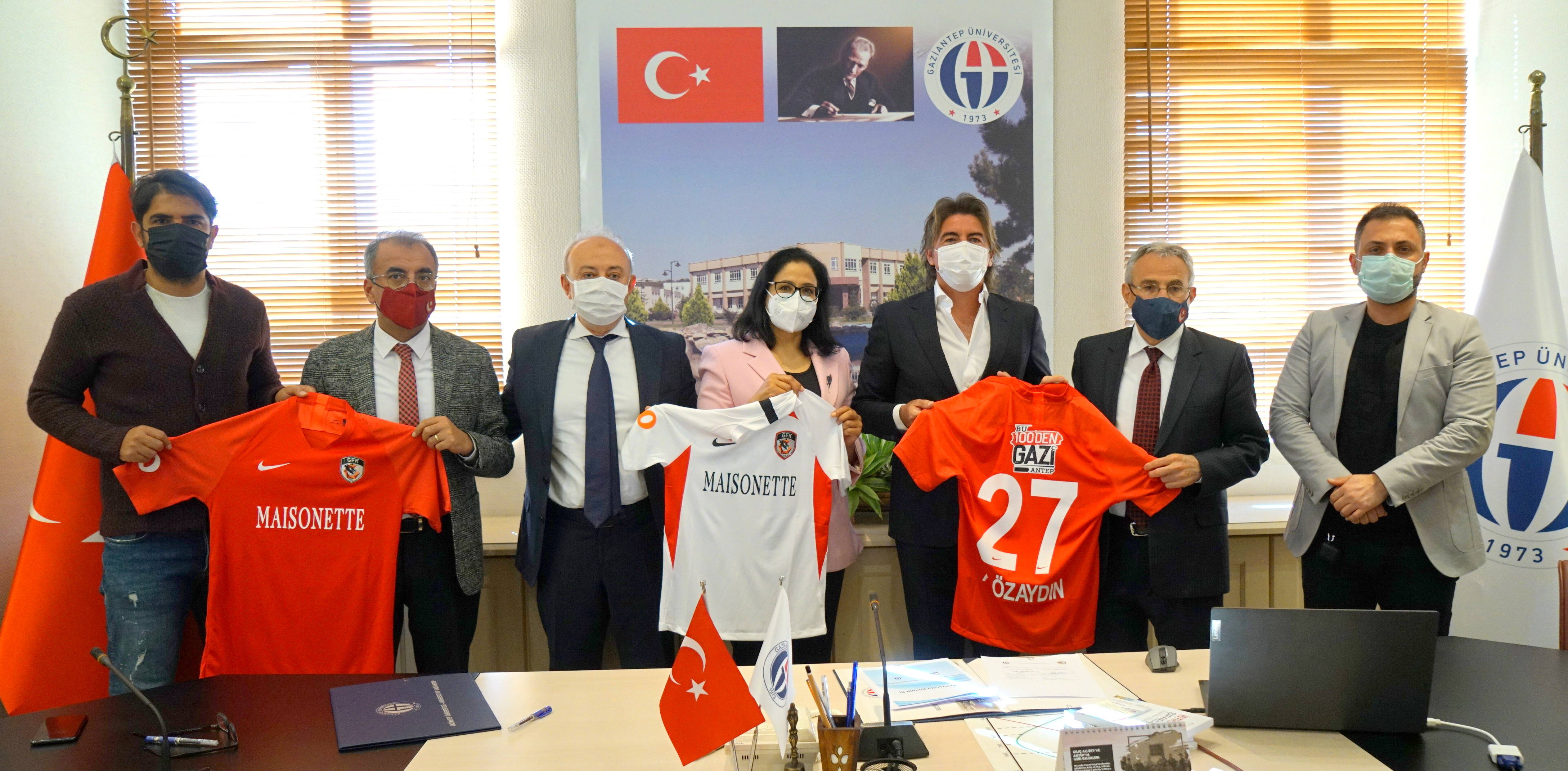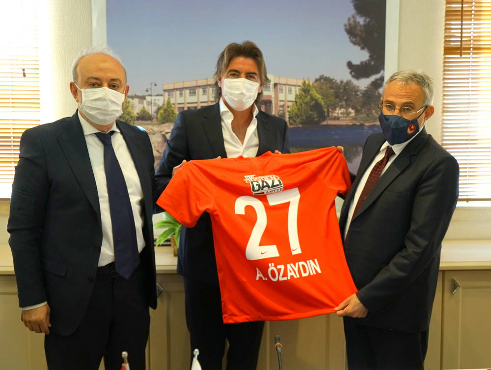 Gaziantep FK As Başkanı Müslüm Özmen ve Teknik Direktör Ricardo Sa Pinto, Gaziantep Üniversitesi Rektörü Prof. Dr. Arif Özaydın, Rektör Yardımcısı Prof. Dr. Ayşe Balat ve Doç. Dr. Hacı Murat Şahin’e isimlerinin yazılı olduğu forma hediye etti.