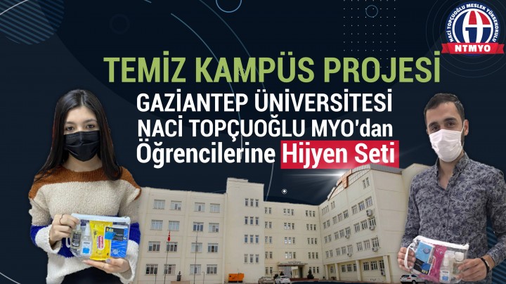 ’Temiz Kampüs’ projesi kapsamında ‘İşyeri Eğitimi’ dersini alan 437 öğrenci için içlerinde kolonya, dezenfektan, maske, ıslak mendil, peçete gibi temizlik malzemelerin bulunduğu hijyen setleri GAÜN Naci Topçuoğlu Meslek Yüksekokulu öğretim elemanları tarafından firmalarda ‘İşyeri Eğitimi’ dersini alan öğrencilere verildi. Ayrıca setlerin içine yeni koronavirüs riskine karşı 14 kural içerikli broşürleri de konuldu.