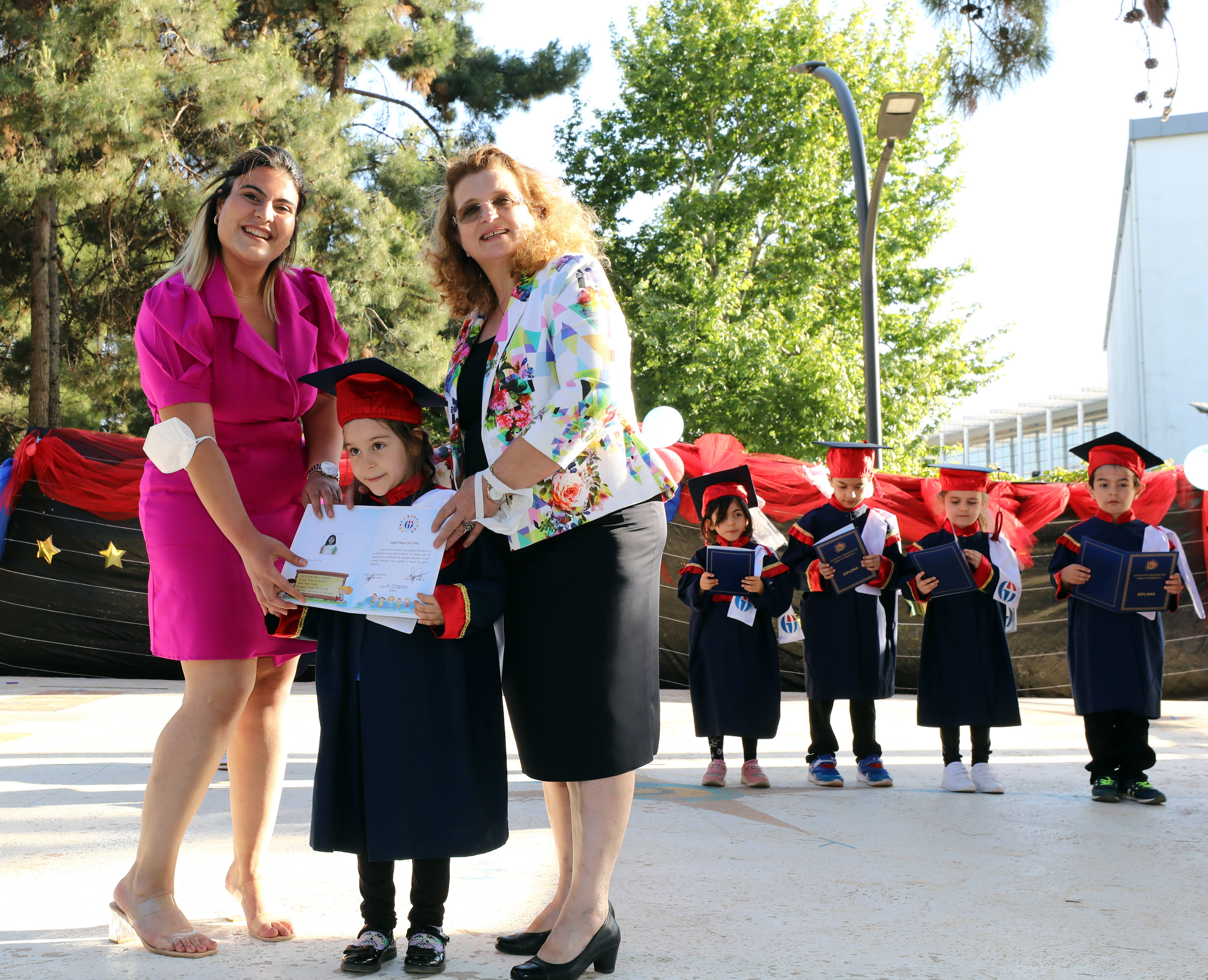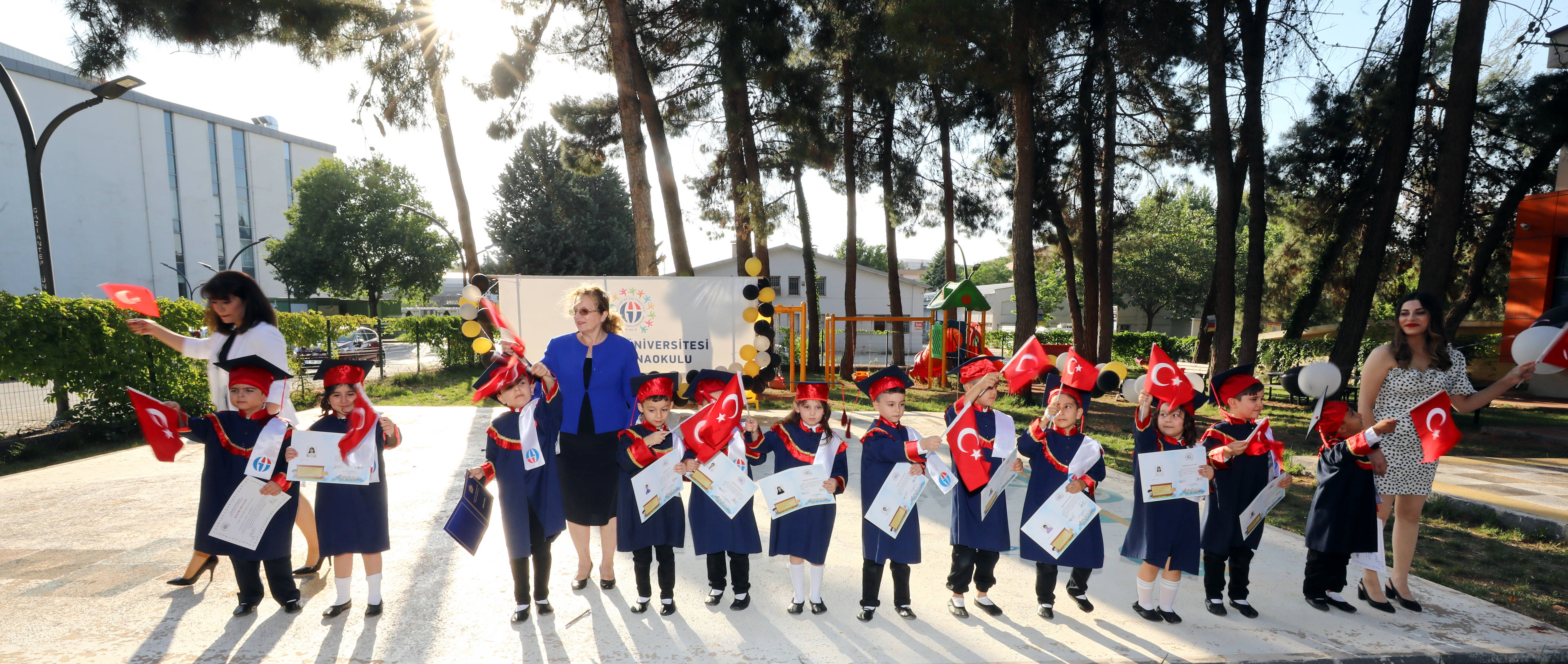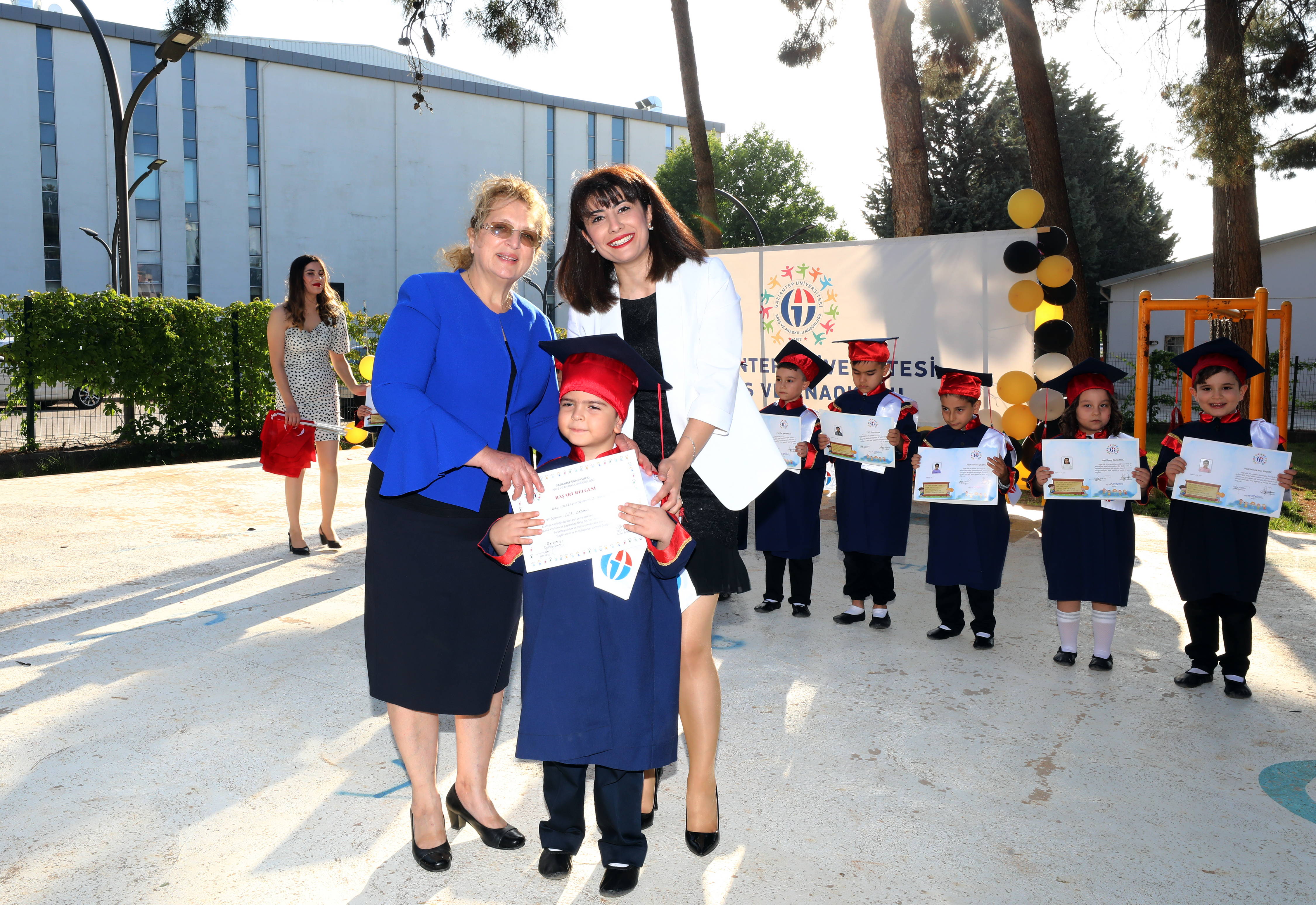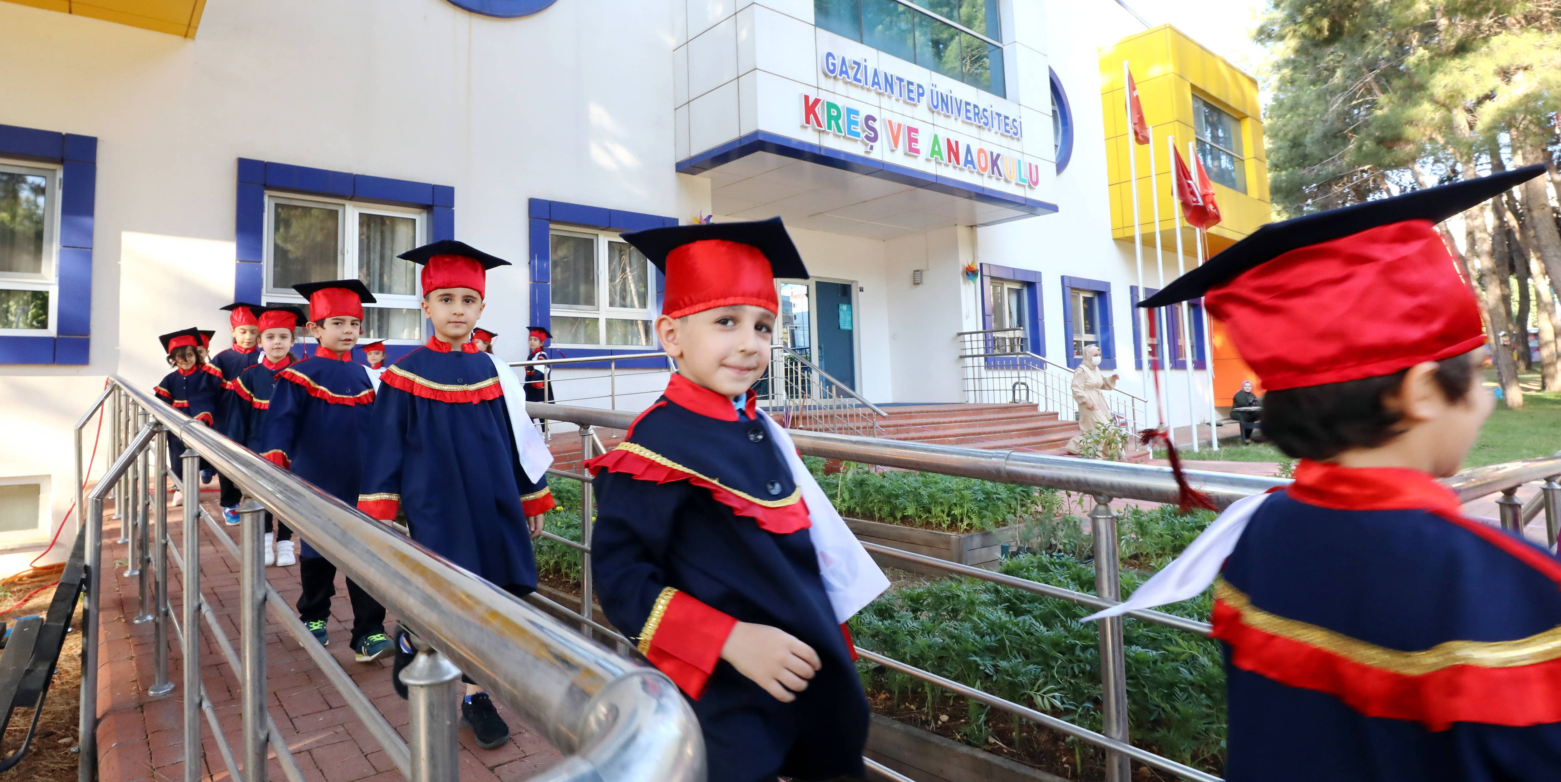 Gaziantep Üniversitesi (GAÜN) Kreş ve Anaokulunda 2020 – 2021 eğitim-öğretim yılı sonunda 50 öğrenci mezun olarak diploma aldı. Pandemi şartlarına uygun olarak okul bahçesinde düzenlenen törende, diplomalarını alarak kep atan öğrenciler mezuniyet sevinci yaşadı.