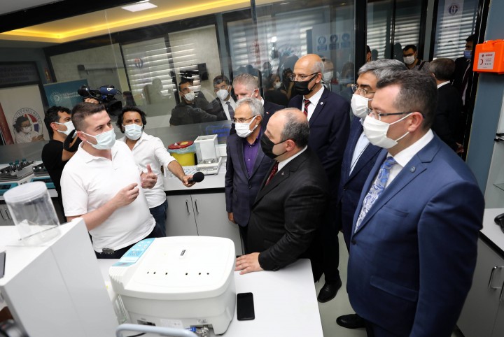 Açılış töreninden sonra Sanayi ve Teknoloji Bakanı Mustafa Varank, İpekyolu Kalkınma Ajansı’nın desteğiyle GAÜN Naci Topçuoğlu Meslek Yüksekokulu tarafından projelendirilen ve 200 metrekare alanda kurulan ayakkabı test laboratuvarında incelemelerde bulundu. GAÜN Rektörü Prof. Dr. Arif Özaydın, Yüksekokul Müdürü Prof. Dr. Hüseyin Bozkurt ile Yüksekokul öğretim elemanları, Bakan Varank ve beraberindekilere laboratuvar ve test işlemleriyle ilgili bilgi aktardı. Uluslararası geçerliliğe sahip test sonuçları verebilen Naci Topçuoğlu Meslek Yüksekokulu Ayakkabı Test Laboratuvarı’nda; ayakkabı ve terlik sektöründe üretim, hammadde satışı yapan ve temin eden işletmelerin ihtiyaç duyduğu birçok analizin yapılarak sektöre hizmet veriyor.