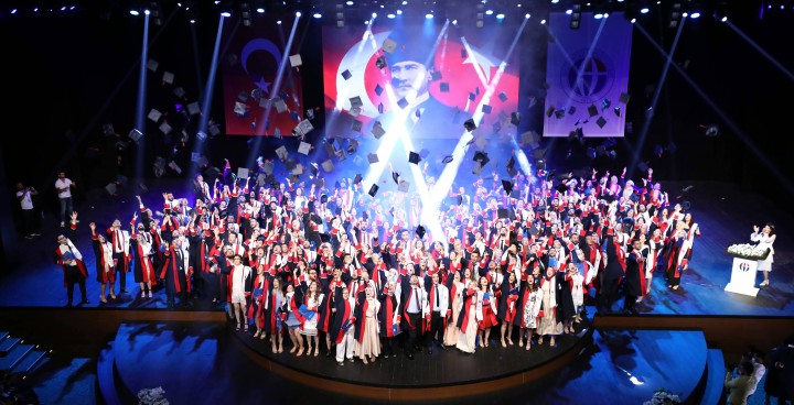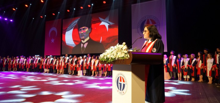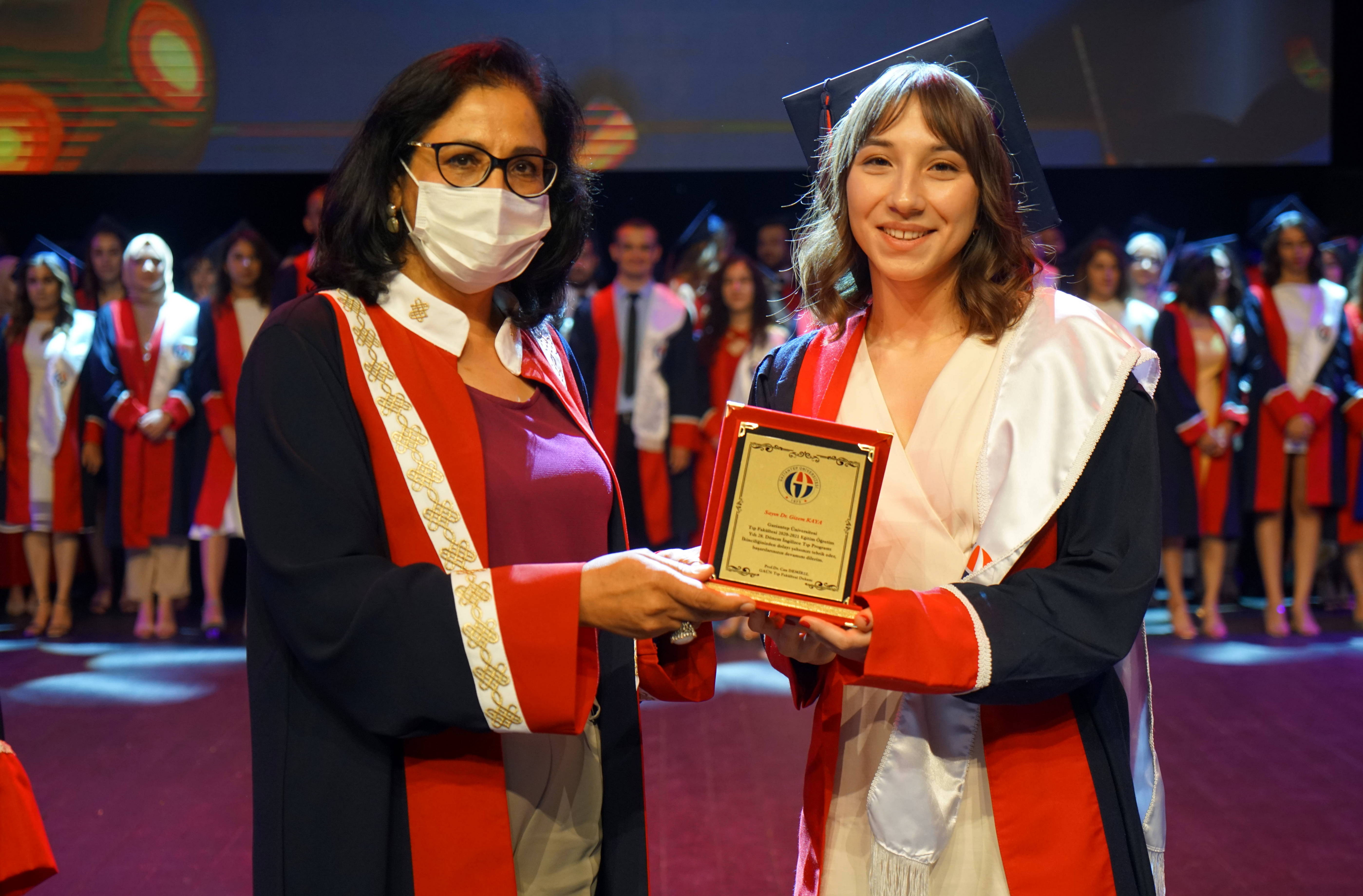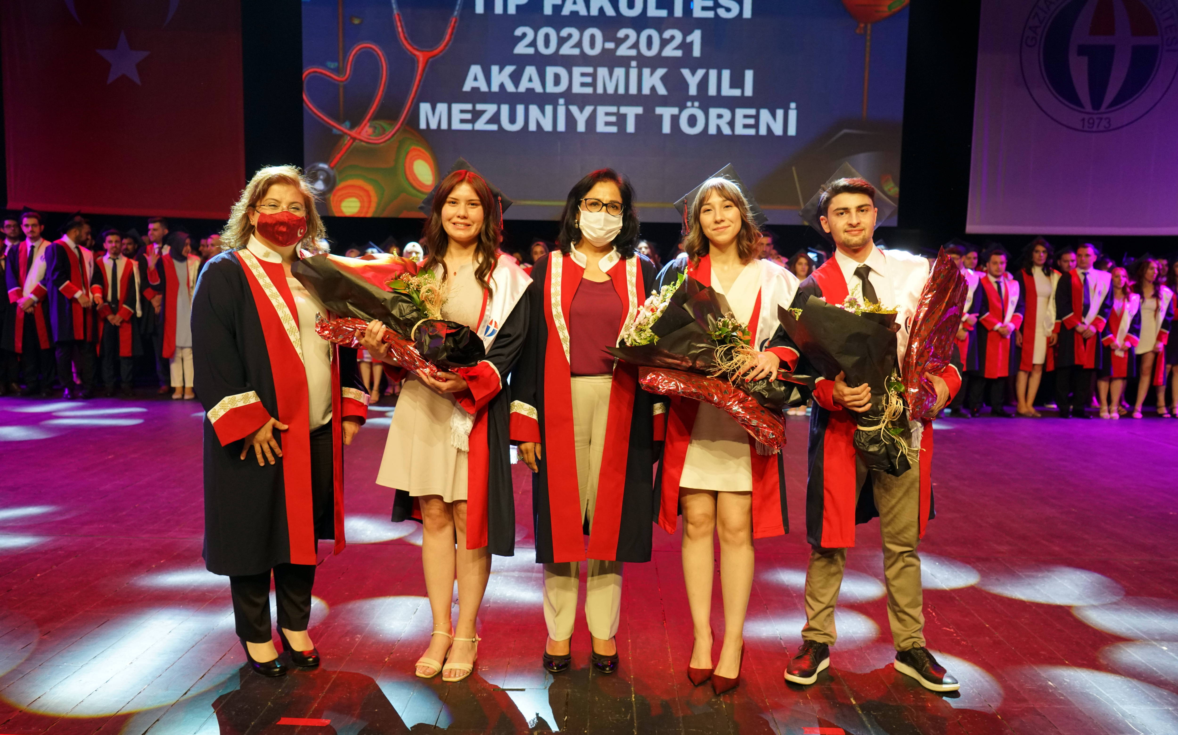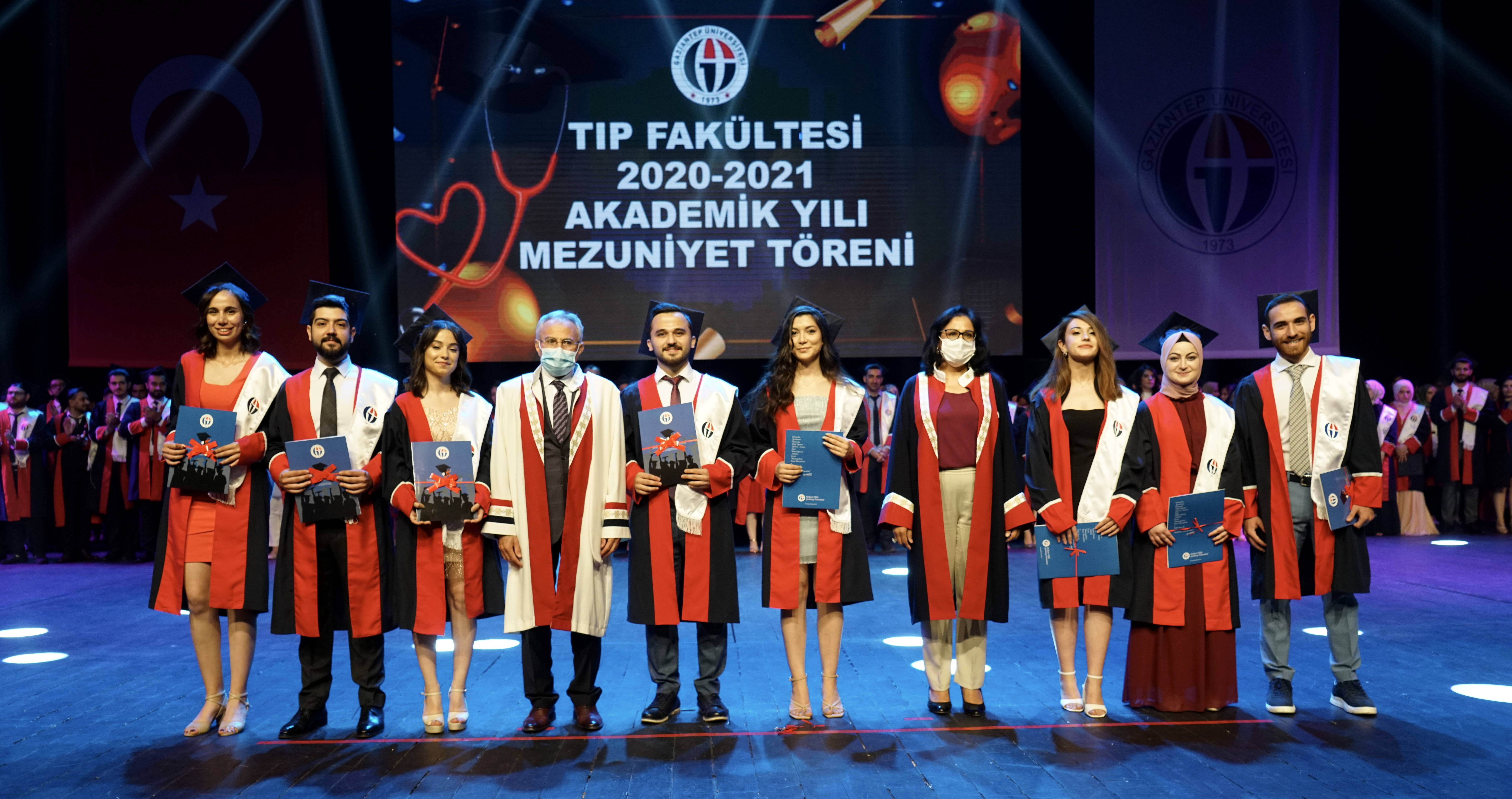 Kovid-19 salgını nedeniyle üst seviyede önlemler altında GAÜN Mavera Kongre ve Sanat Merkezi’nde gerçekleşen mezuniyet törenine; GAÜN Rektörü Prof. Dr. Arif Özaydın, Rektör Yardımcısı Prof. Dr. Ayşe Balat, Genel Sekreter Prof. Dr. Yakup Bulut, Tıp Fakültesi Dekanı Prof. Dr. Can Demirel, akademisyenler ve öğrenci yakınları katıldı.