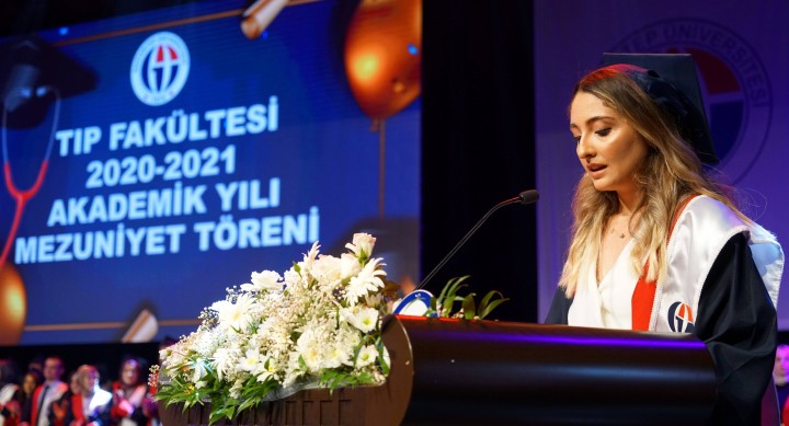 Tıp Fakültesi Dekanı Can Demirel ise şunları söyledi: “Uzun ve zorlu bir eğitimin sonunda öğrencilerimiz tıp diplomalarını alacaklar. Bugün öğrencilerin, hocaların ve velilerin onur ve gurur günü. Eğitim sürecinde öğrencilerimizin iyi bir hekim olmanın gereğinin öğreten, bilgi ve becerilerini kazandıran tüm hocalarımıza teşekkür ederim. Tüm dünyaya yayılan salgın sebebiyle olağanüstü bir dönemden geçiyoruz. Fakültemiz hocaları bir yandan hastanede pandemiyle mücadele ederken diğer yandan genç hekimlerimizin eğitim faaliyetlerini de aksatmadan, büyük bir özveriyle yürüttüler. Bu zorlu süreçte hocalarımızın pek çoğu hastalandı ve yakınlarını kaybettiler. Tüm sıkıntılara rağmen görevlerin başından biran olsun ayrılmadılar. Öğrencilerimiz, hocalarından örnek aldıkları meslek bilinciyle, İntörn hekimlik sürecinde bir sağlık çalışanı olarak pandemi mücadelesinde aktif görev aldılar ve bu sürecin yakın şahitleri oldular.”