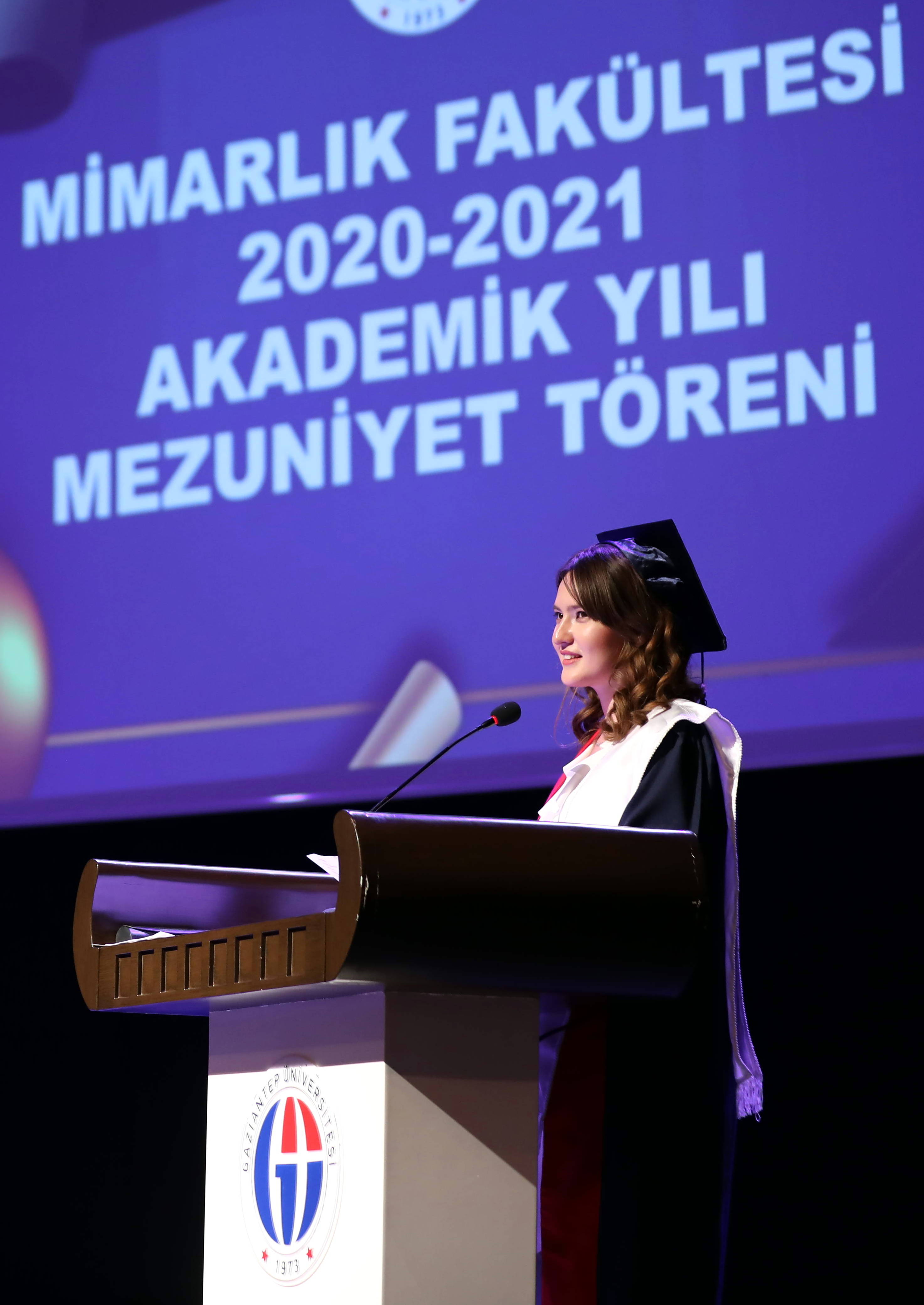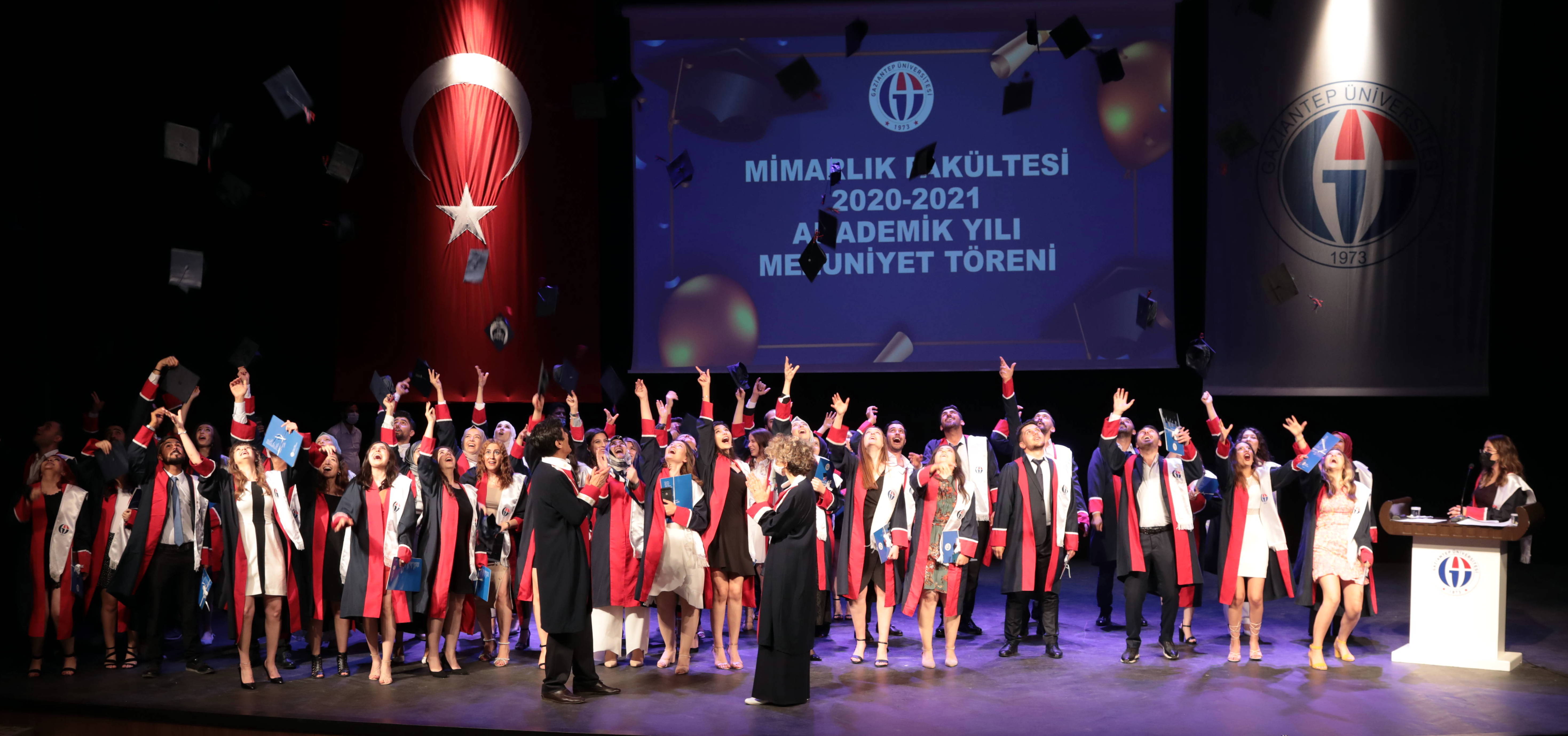 Gaziantep Üniversitesi (GAÜN) Mimarlık Fakültesi 2020 – 2021 Eğitim-Öğretim Yılı Mezuniyet töreni Corona Virüs (COVİD-19) salgını nedeniyle alınan tedbirlerle düzenlenen törende 80 öğrenci mezun oldu. Törende; Mimarlık Fakültesi birincisi Zeynep Korkmaz’ın mezuniyet kütüğüne plaket çakılması sonrasında Rektör Yardımcısı Prof. Dr. Recep Yumrutaş ve Mimarlık Fakültesi Dekanı Prof. Dr. Mustafa Özakça tarafından fakülte birincisi Zeynep Korkmaz, ikinci Çiğdem Ela Üzüm ve üçüncü Merve Özberkmen’e plaket ve hediye takdim edildi.