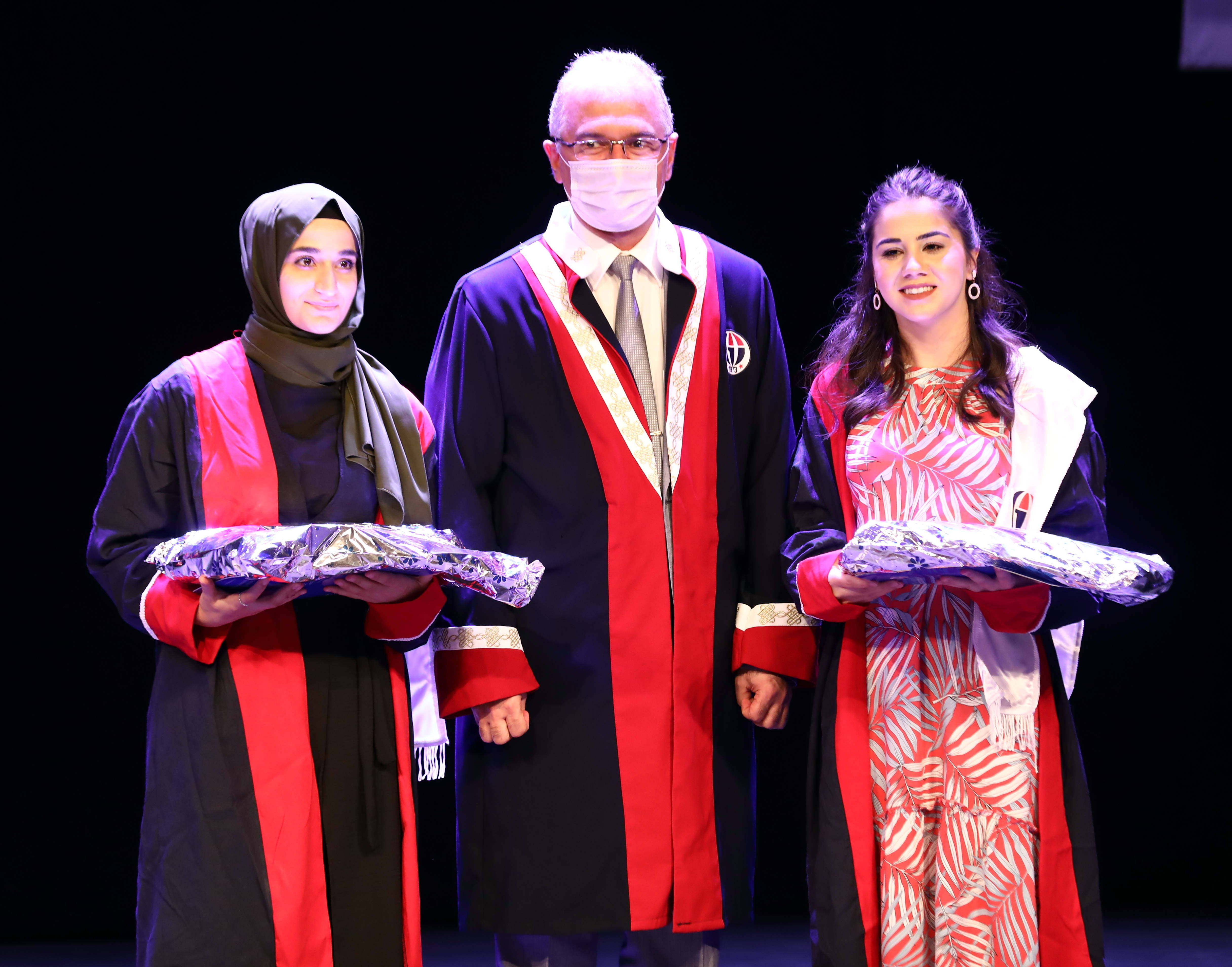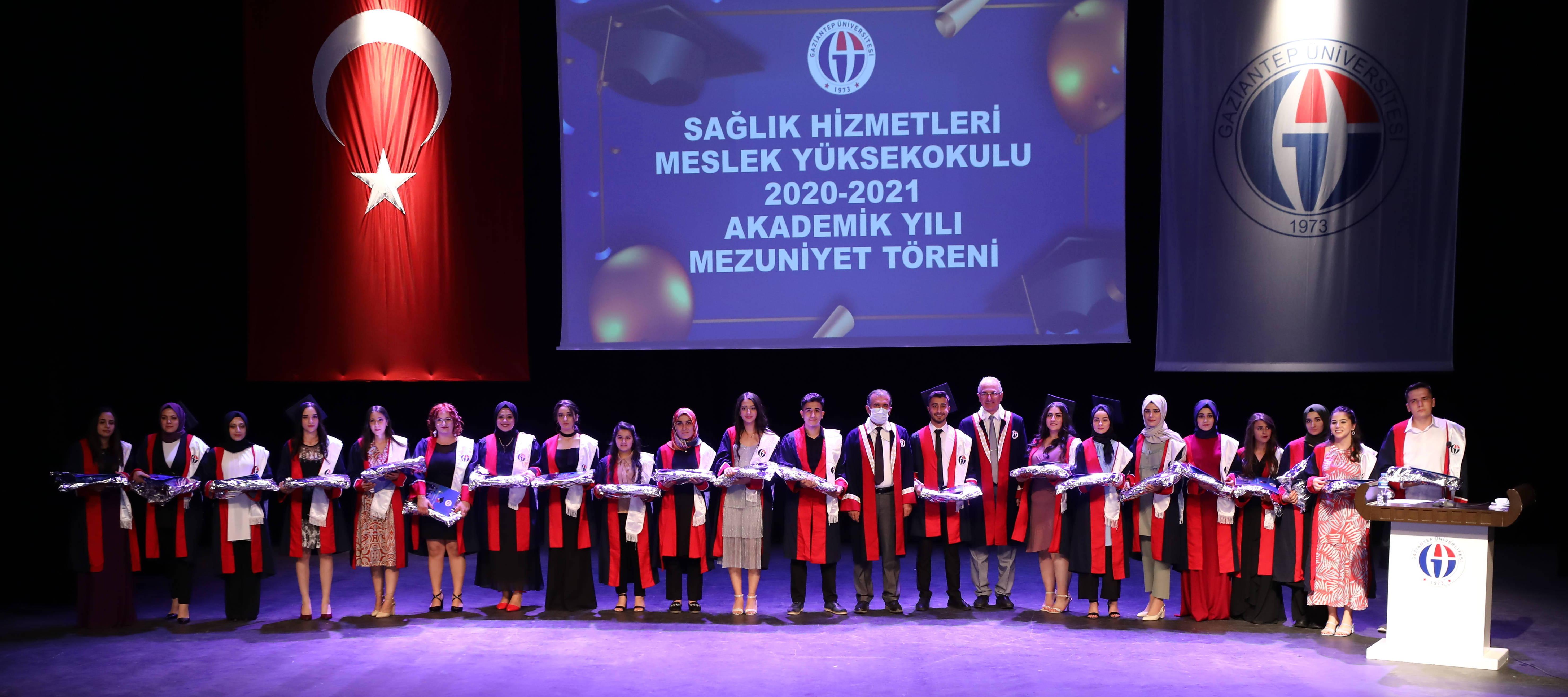 Gaziantep Üniversitesi (GAÜN) Sağlık Hizmetleri Meslek Yüksekokulu 2020 – 2021 Akademik Yılı Mezuniyet Töreni GAÜN Atatürk Kültür Sahnesi’nde gerçekleşti. Törende; Yüksekokul Birincisi Ece Kocar’ın mezuniyet kütüğüne plaket çakılması sonrasında Rektör Yardımcısı Prof. Dr. Recep Yumrutaş tarafından Yüksekokul Birincisi Ece Kocar, ikinci Elif Çolak ve üçüncü Elif Çıldır’a plaket ve hediye takdim edildi.