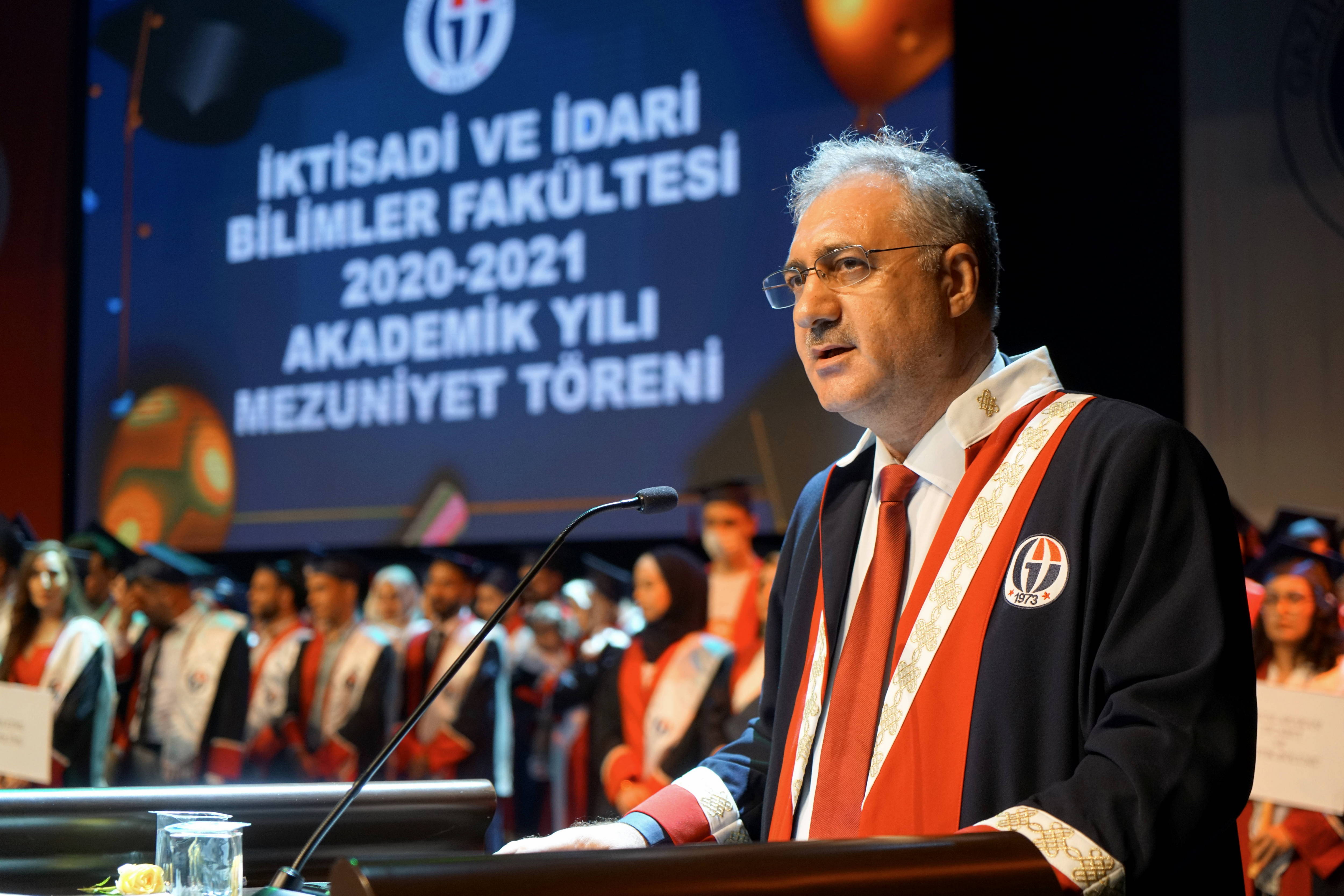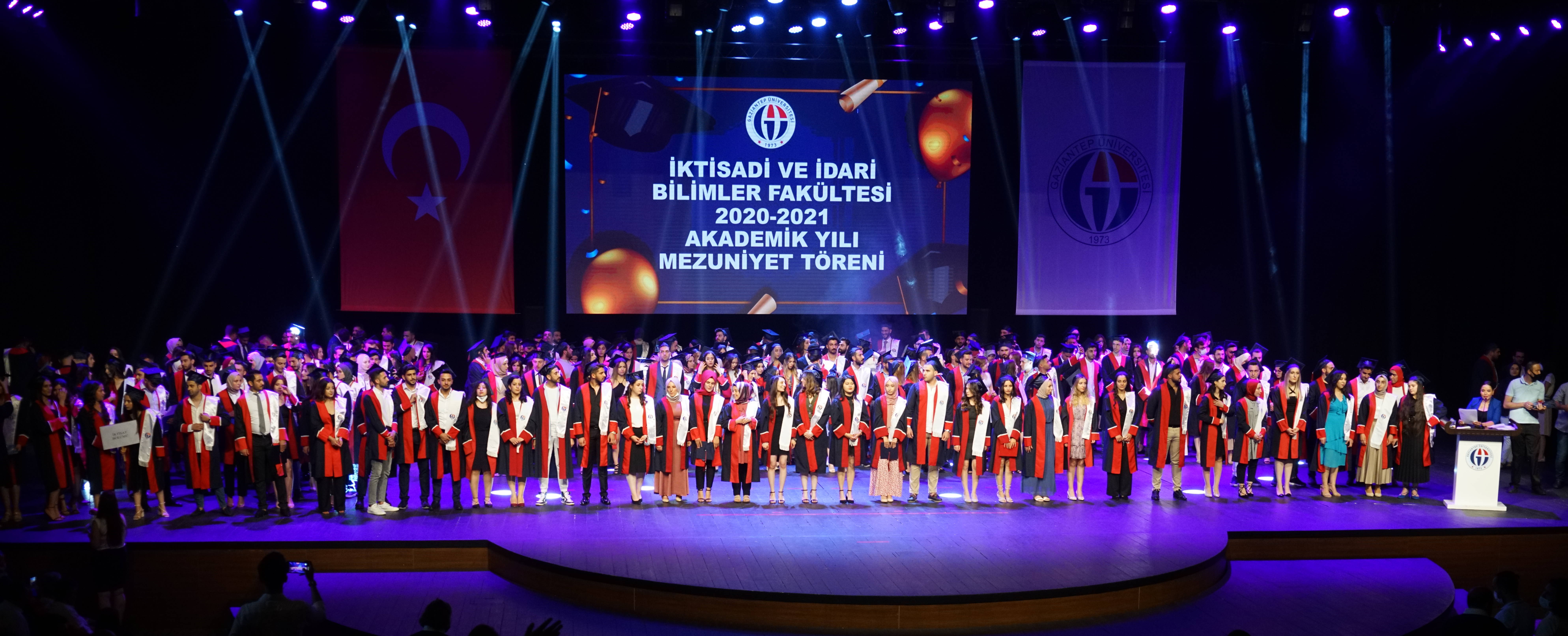 Gaziantep Üniversitesi (GAÜN) İktisadi ve İdari Bilimler Fakültesi tarafından 2020-2021 eğitim-öğretim dönemi Mezuniyet Töreni’nde İktisat, İşletme, Uluslararası Ticaret ve Lojistik bölümlerinden lisans eğitimlerini tamamlayan 426 öğrenci, kep atarak mezun oldu.