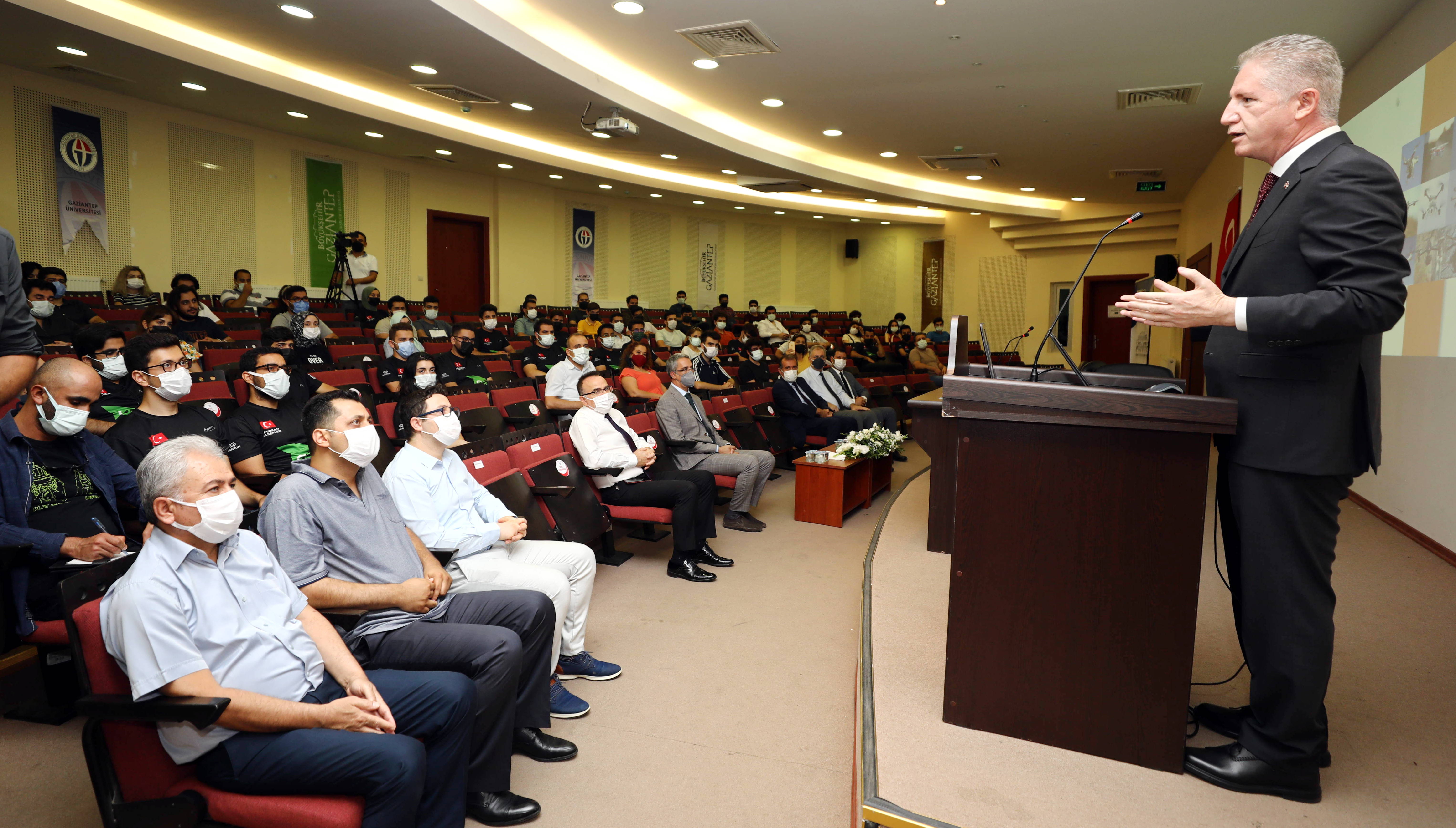 Gaziantep Üniversitesi ile Gaziantep Büyükşehir Belediyesi işbirliğinde düzenlenen, TEKNOFEST 2021’e hazırlanan öğrenci ve danışmanlarına yönelik gerçekleştirilen ‘Ticari İHA Pilotluk Eğitimi’ sonuç toplantısı GAÜN Mühendislik Fakültesi Toplantı Salonu’nda, Gaziantep Valisi Davut Gül, Rektör Vekili Prof. Dr. Recep Yumrutaş, Büyükşehir Belediye Başkan Vekili Erdem Güzelbey’in katılımıyla gerçekleşti.