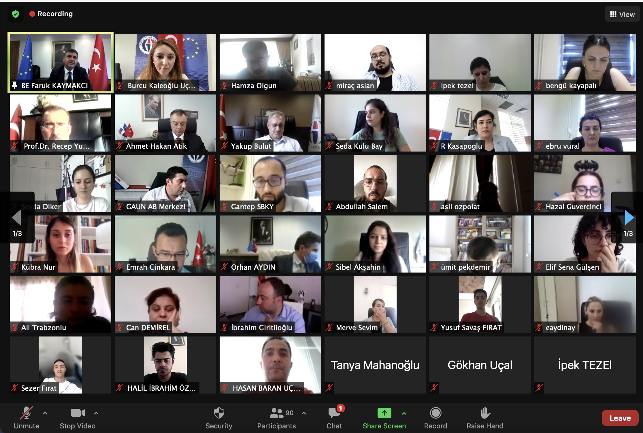Türkiye Cumhuriyeti Dışişleri Bakanlığı Avrupa Birliği Başkanlığı ile Gaziantep Üniversitesi (GAÜN) Avrupa Birliği Araştırmaları Merkezi iş birliğinde “Gençlerle Avrupa Birliği Buluşmaları” etkinliği online olarak gerçekleşti.