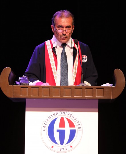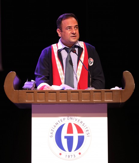 GAÜN Atatürk Kültür Sahnesi’nde gerçekleştirilen mezuniyet töreninin açılış konuşmasını yapan Rektör Vekili Prof. Dr. Recep Yumrutaş, öğrenci ailelerine ve İletişim Fakültesi öğretim üyelerine çalışkan, gayretli ve özgüveni yüksek gençler yetiştirdiği için teşekkür etti. Gaziantep Üniversitesinin her alanda topluma fayda sağlayan bir üniversite olduğunu vurguladığı konuşmasında, genç iletişimcilere tavsiyelerde bulunarak şunları söyledi: “Çalıştığınız işyerlerinde birçok problemlerle karşılaşacaksınız. Bu problemler ve güçlükler karşısında asla yılmayacağınıza, bu sorunların üstesinden geleceğinize, Ülkemizin ilerlemesi için yüreğinizi ortaya koyacağınıza gönülden inanıyorum. Şu ana kadar Üniversitemizde ve Fakültemizde edindiğiniz bilgi birikiminizi, tecrübelerinizi ve donanımınızı ailenizin, Ülkemizin ve insanımızın faydasına kullanacağınıza inancım tamdır. İnşallah çalışacağınız yerlerde çalışkan ve gayretli bir iletişimci olarak bu topluma bir değer katacaksınız.”