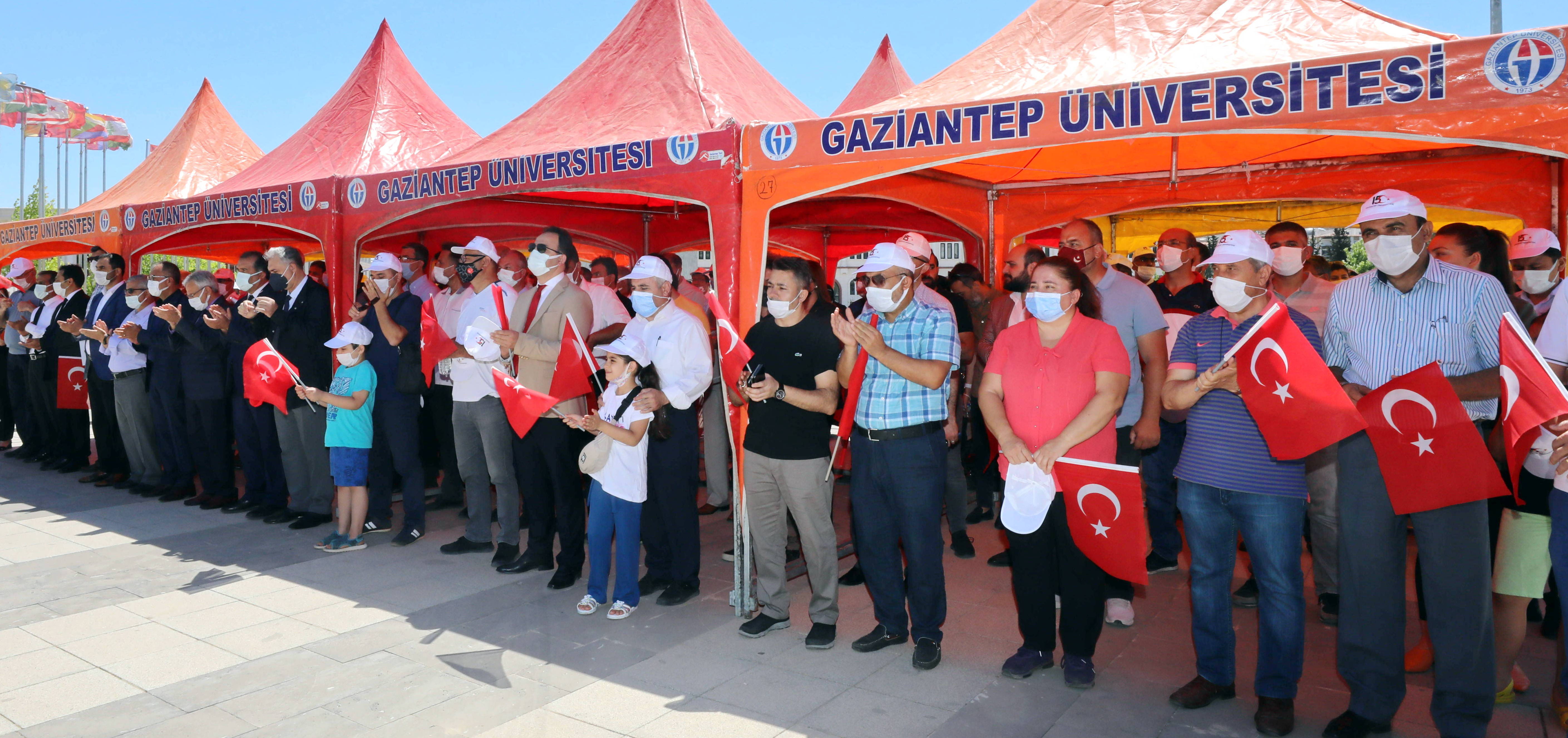 Gaziantep Üniversitesi’nde (GAÜN) “15 Temmuz Demokrasi ve Milli Birlik Günü” etkinlikleri kapsamında anma töreni düzenlendi. GAÜN Meydanda saygı duruşu ve İstiklal Marşı’nın okunmasıyla başlayan törende; İl Müftü Yardımcısı Ramazan Yıldırım tarafından Kur’an-ı Kerim Tilaveti ve Azez İslami İlimler Fakültesi Dekanı Prof. Dr. Mahmut Çınar tarafından da şehitlerimiz için dua edildi.