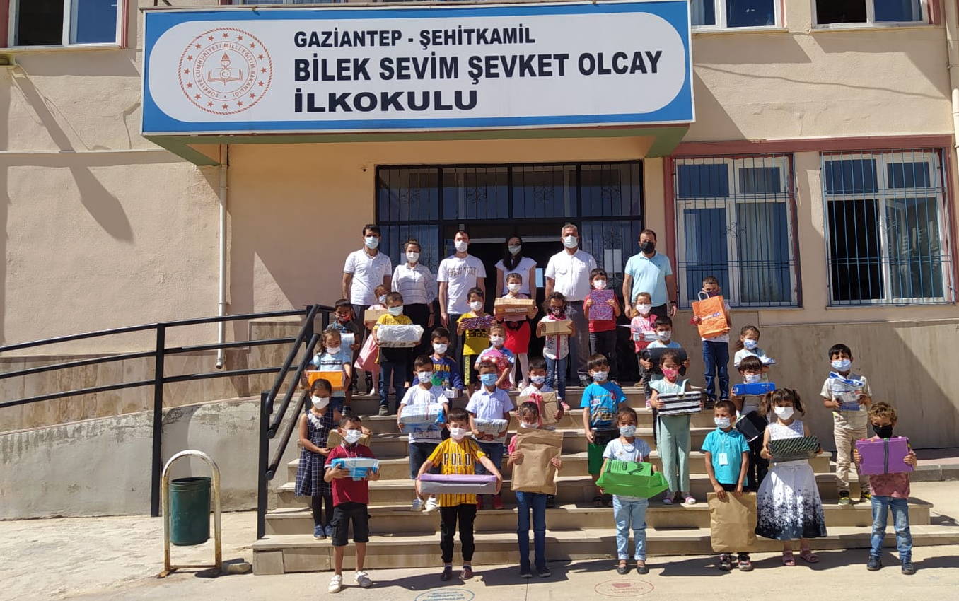 Gaziantep Üniversitesi (GAÜN) Sosyal Bilimler Meslek Yüksekokulu öğrencileri, Gaziantep Şehitkamil Bilek Sevim Şevket Olcay İlkokulu’nda eğitim gören 80 öğrenciye okut seti hediye etti.