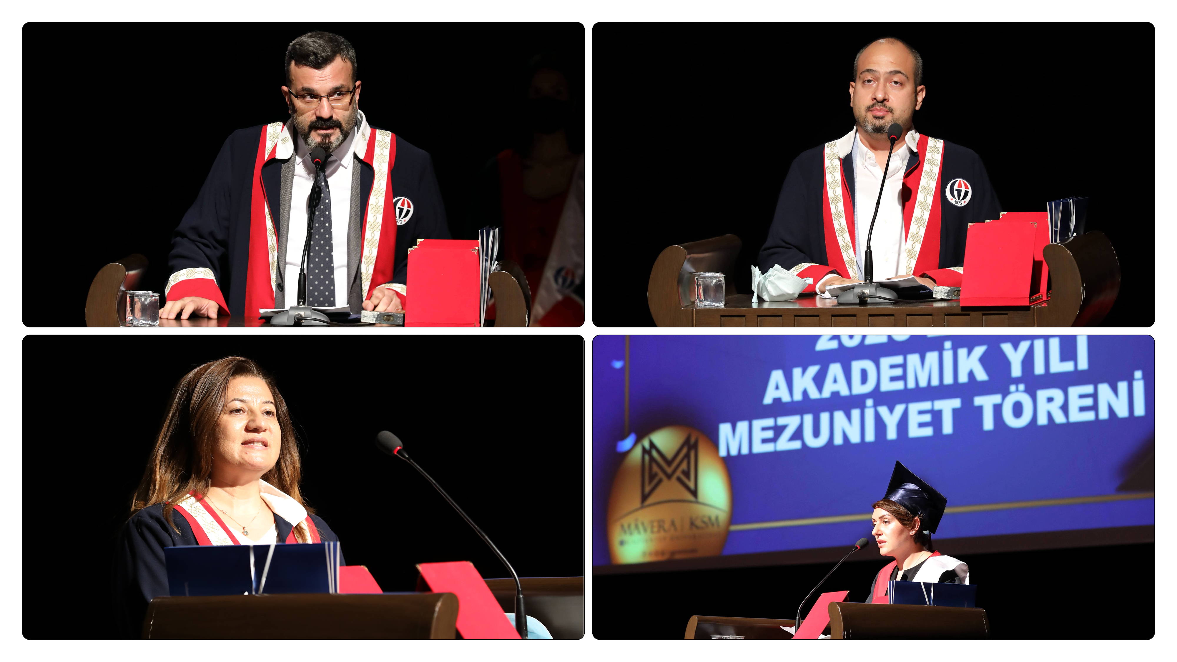 Radyo, Televizyon ve Sinema Bölüm Başkanı Doç. Dr. Özcan Demir, Resim Bölüm Başkanı Doç. Dr. Ayhan Özer ve Tekstil ve Moda Tasarımı Bölüm Başkanı Doç. Dr. Ebru Çoruh’un konuşmalarından sonra öğrenciler adına konuşan Güzel Sanatlar Fakültesi birincisi Nazlı Belgin Akıncı ise mezun olmanın sevincini yaşadıklarını söyledi. Nazlı Belgin Akıncı, “Bugün hepimiz mezun oluyoruz. Ben size örnek olayım. Bundan sonra lütfen öğrenmeyi bırakmayın. Okuyun, çalışkan olun ve hayalleriniz olsun. Onların gerçekleşmesi için çalışın. Size negatif enerji veren ve size başaramayacağınızı söyleyen herkesten uzak durun. Girişimci olun ve korkmayın” dedi.