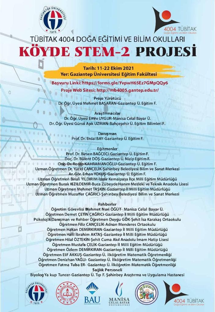 Gaziantep Üniversitesi (GAÜN) yürütücülüğünde, TÜBİTAK 4004 Doğa Eğitimi ve Bilim Okulları Programı çağrısı kapsamında ”TÜBİTAK 4004 Köyde STEM 2” Proje Açılış Töreni GAÜN Gaziantep Eğitim Fakültesi Konferans Salonu’nda gerçekleştirildi.