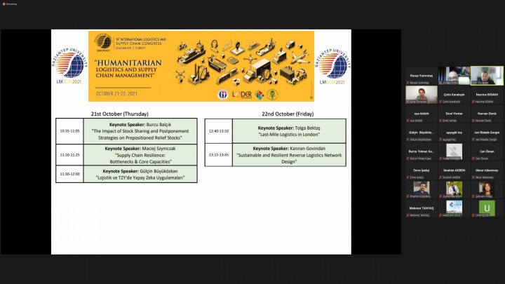 Multidisipliner içeriği ve zengin konu başlıklarıyla araştırmacılara önemli bir platform sunan kongre, lojistik ve tedarik zinciri ile ilgili akademisyenler, profesyoneller ve yöneticileri bir araya getirdi. Pandemi nedeni ile video konferans sistemi ile çevrimiçi olarak gerçekleştirilen, GAÜN Öğretim Üyesi Doç. Dr. Eren Özceylan’ın moderatörlüğünü ve kongre başkanlığını yaptığı 19. Uluslararası Lojistik ve Tedarik Zinciri Kongresi’nin açılış konuşmalarını; Hasan Kalyoncu Üniversitesi (HKÜ) Rektörü Prof. Dr. Türkay Dereli, Gaziantep Üniversitesi (GAÜN) Rektör Yardımcısı Prof. Dr. Recep Yumrutaş, Lojistik Derneği (LODER) Yönetim Kurulu Başkanı Mehmet Tanyaş yaptı.