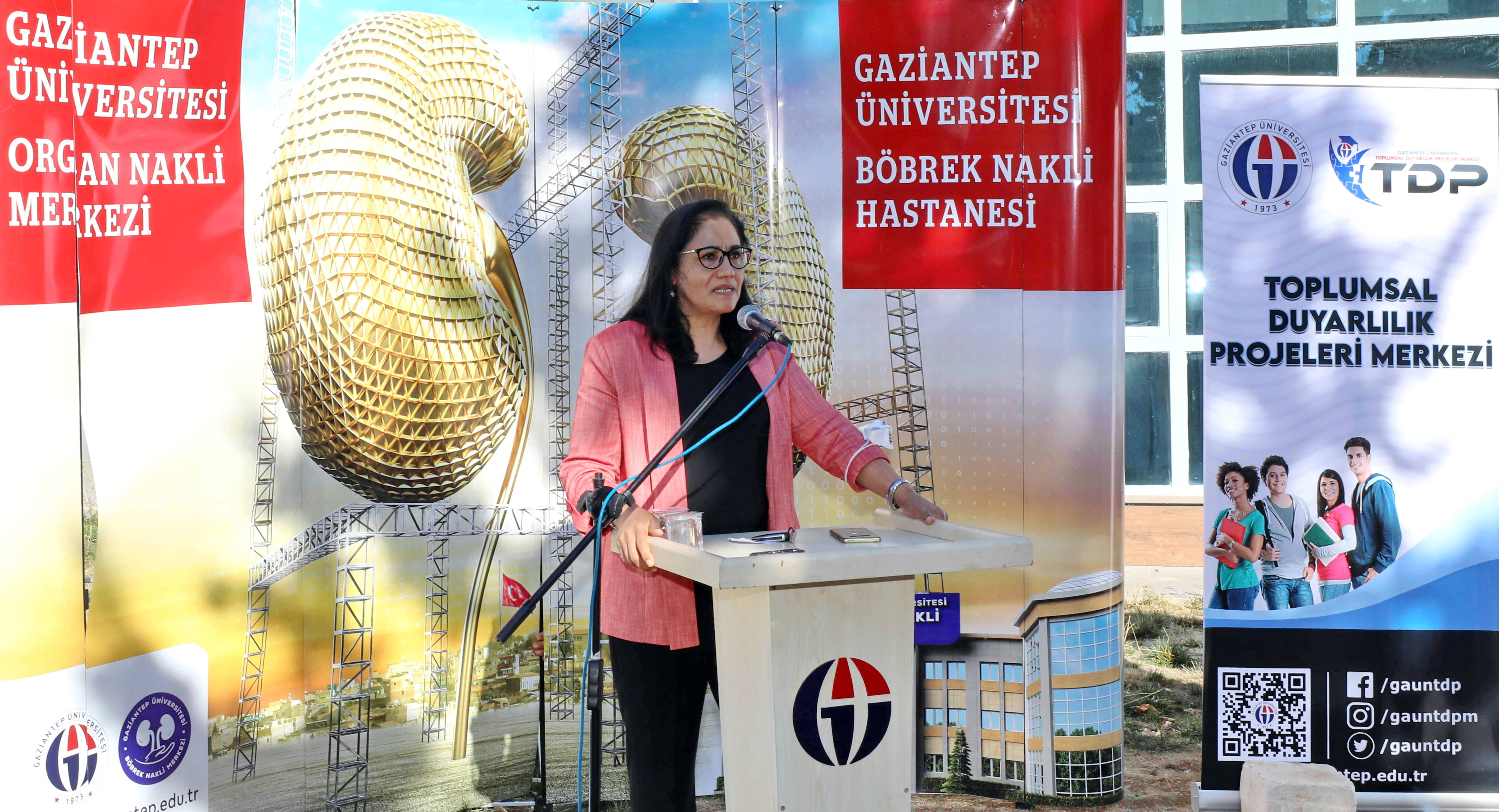 GAÜN Rektör Yardımcısı Prof. Dr. Ayşe Balat ise, Türkiye’de, böbrek nakli bekleyen hasta sayısının 30 bini aştığını belirterek, organ naklinin yaşam kalitesi ve hayatı idame etmek açısından çok önemli olduğunu söyledi. Prof. Dr. Balat konuşmasının devamında şunları söyledi: “Hastalar, haftada üç gün 4’er saat diyalize giriyor. Makine olmadan ya da karın diyalizi yapılmadan hayatlarını sürdürmesi mümkün değil. Bu hastalar bir organ bekliyor. Organ bağışı yoksa biz her yıl bu hastaların yarısını bir sonraki yıl belki aramızda göremeyeceğiz. Ülkemizde organ bağışının artırılmasına yönelik çok ciddi çabalar var. Çünkü bizde aile, akraba bağları çok güçlü ve canlı bağışçı oranları yüksek. Avrupa, Amerika ortalamalarının çok üstündeyiz, dünyada birinciyiz. Bu övünülecek biraz da düşündürecek bir şey. Milyonlarca insan da ölüyor. Kadavralardan organ bağışı almamışsanız bu organlar ölen kişilerle birlikte toprak oluyor. Halbuki bu organa hayatını bağlamış, onları bekleyen binlerce insan var. Dolayısıyla organ bağışına teşvik etmek, aileleri teşvik etmek bilinçlendirmek son derece önemli. Gelin biz de organ bağışı ile bu hastalarımıza umut olalım.”