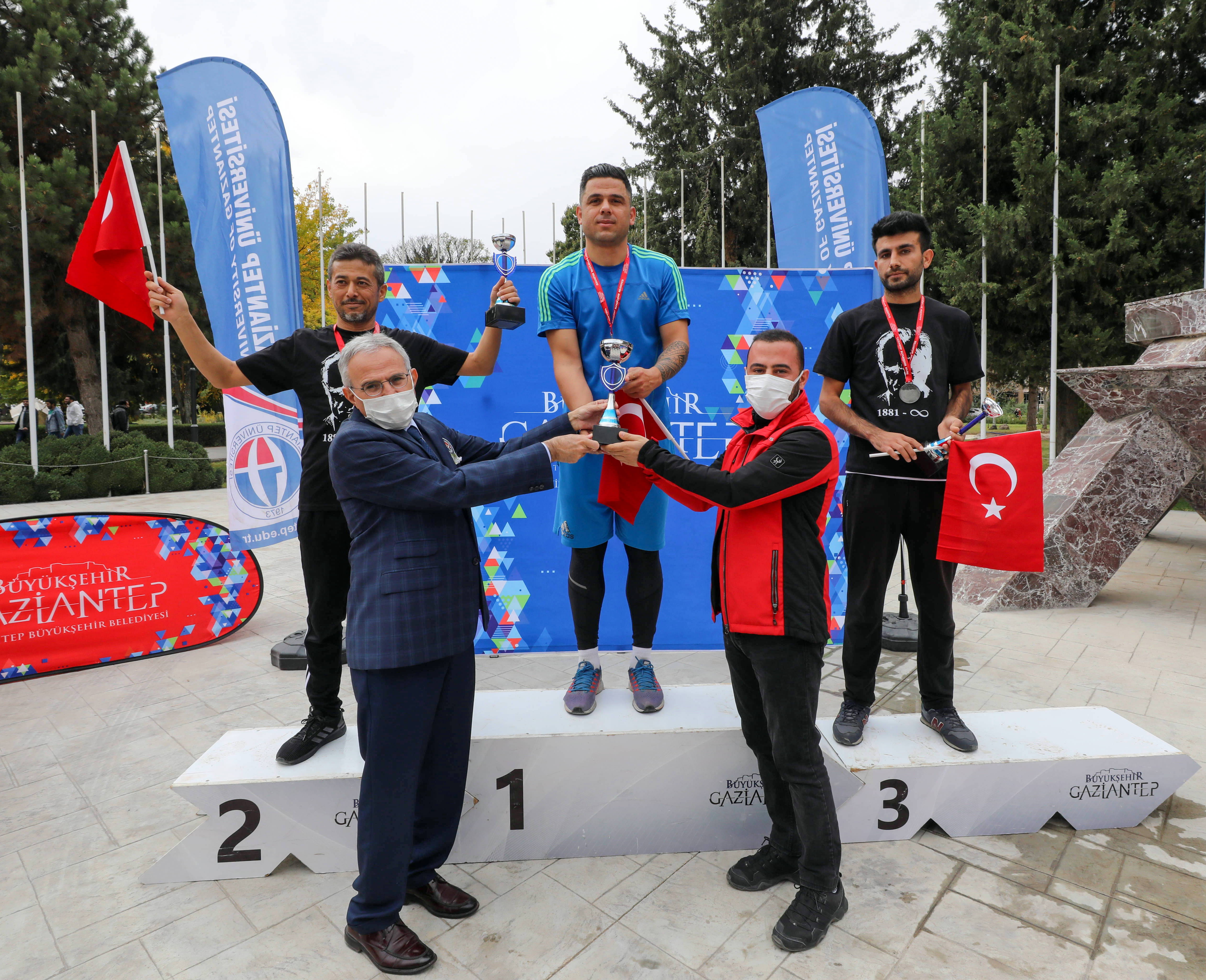 Koşu finalinde; Minik Erkekler kategorisinde birinci olan Mehmet Mustafa Demir’e ve ikinci olan Salih Özdemir’e kupa ve madalyaları Rektör Prof. Dr. Arif Özaydın tarafından verildi. Minik Kızlar kategorisinde Elif Naz Bozkurt birinci olurken, Emine Nur Uygur ikinci, Selda Nisa Karayılan üçüncü ve Emelse Kaya dördüncü oldu. Kupa ve madalyaları Rektör Yardımcısı Prof. Dr. Ayşe Balat tarafından verildi. Yıldız Kızlar kategorisinde Elif İlkay Çerçiler birinciliği alırken, Neziha Muslu ikinci, Kader Bilgin üçüncü, Betül Cemre Geliş dördüncü oldu. Rektör Yardımcısı Prof. Dr. Recep Yumrutaş tarafından kupa ve ödülleri takdim edildi. Genç Kızlar kategorisinde Sıdıka Karacoğlan birinci, Melis Ece Caymaz ikinci, Özge Yıldız üçüncü, Sibel Alıcı ise dördüncü oldu. Kupa ve madalyaları Rektör Danışmanı Doç. Dr. Hacı Murat Şahin tarafından takdim edildi. Genç Erkekler kategorisinde ise Salih Keksöz birinci olurken, Mustafa Polat ikinci ve Mustafa Bakır üçüncü oldu. Kupa ve ödülleri Gençlik ve Spor Hizmetleri Müdürü Nurettin Özyürek tarafından verildi. Master Erkek kategorisinde de Harun Esen birinci olurken, Uğur Yeşil İkinci, Bülent Yavuz üçüncü oldu. Büyükşehir Belediyesi Spor Şube Müdürü Oğuz Satıcı tarafından kupa ve ödülleri verildi.