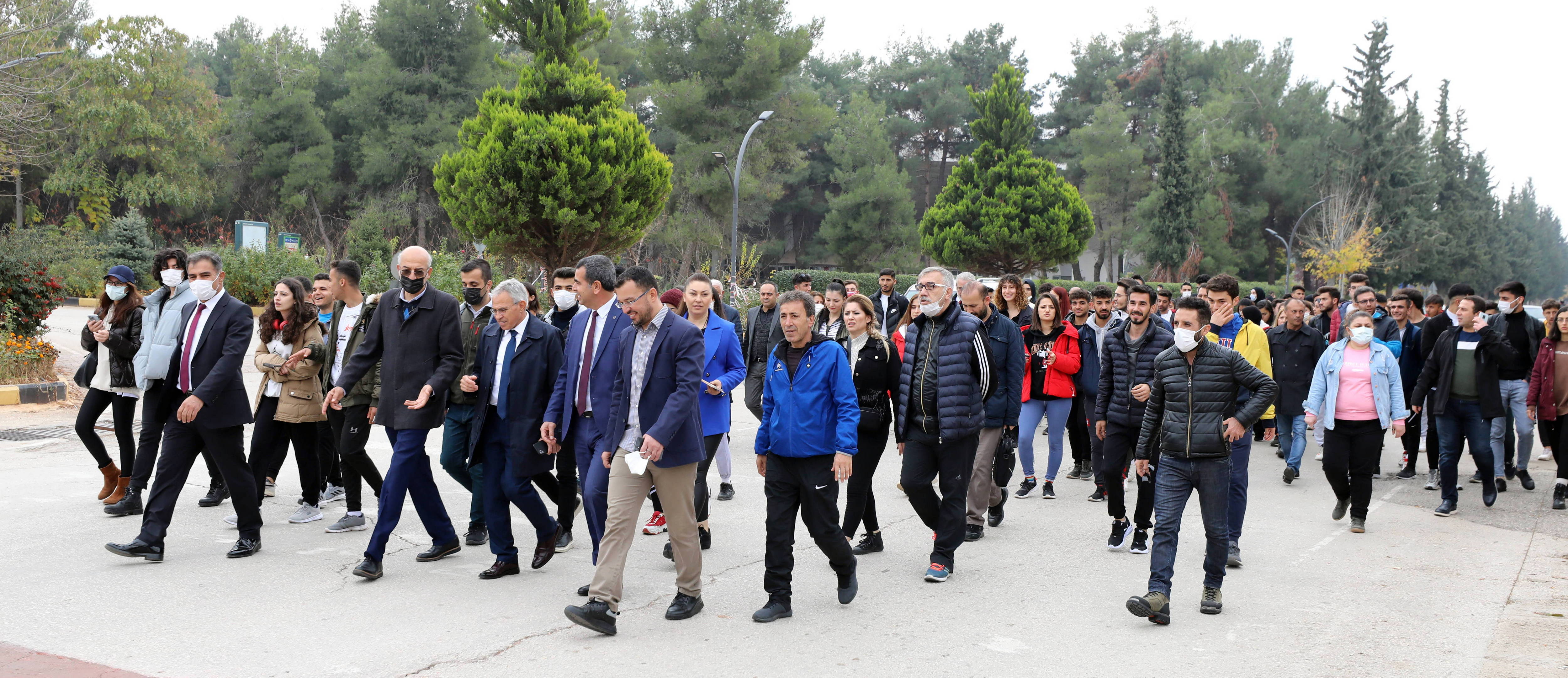Rektör Prof. Dr. Arif Özaydın’ın başlama işaretiyle başlayan 24 Kasım Öğretmenler Günü Yürüyüşü yoğun bir katılımla gerçekleşti.