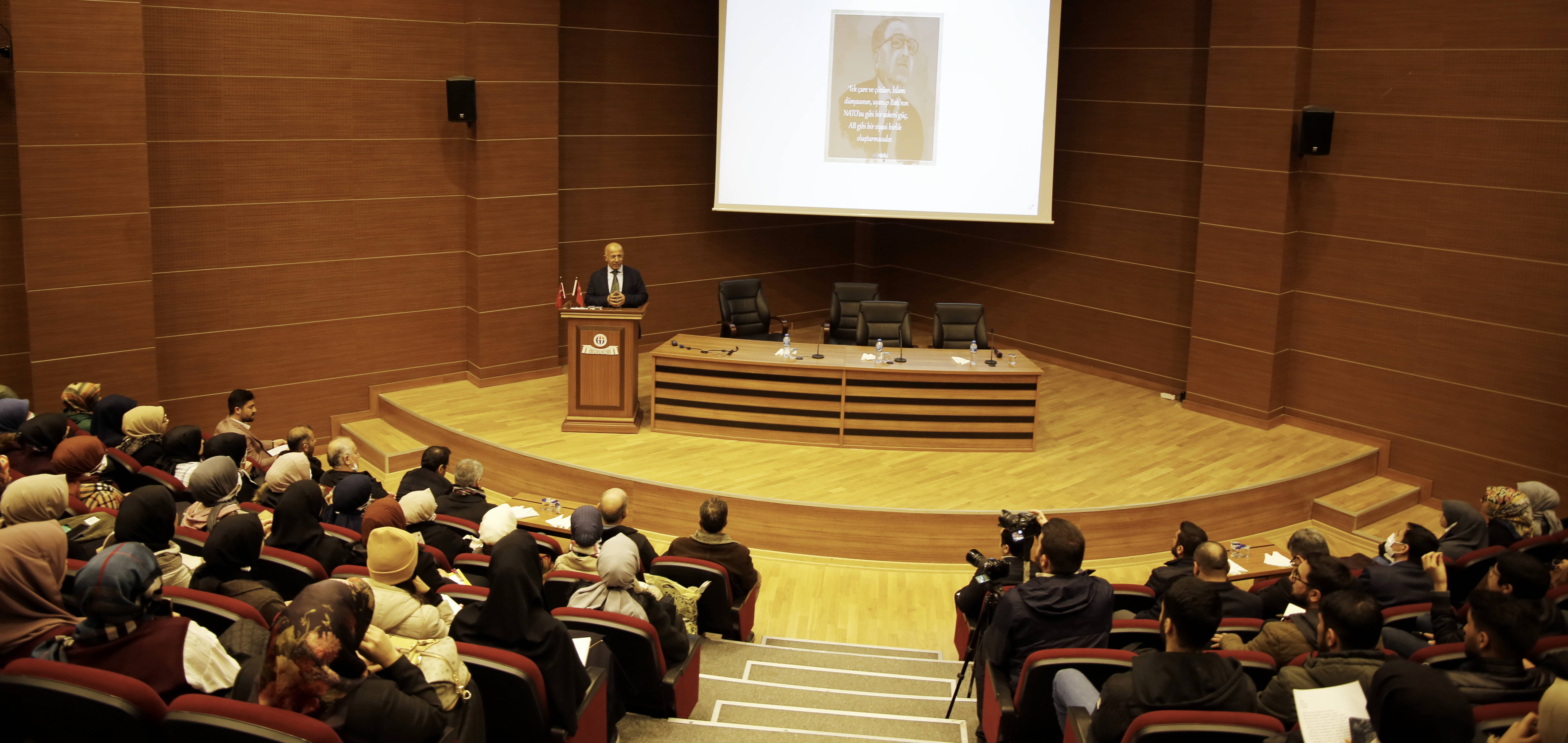 Fakülte öğrencilerinden Asena Zerrin Cihan’ın şiir okuması sonrasında başlayan, Moderatörlüğünü GAÜN İlahiyat Fakültesi Dr. Öğretim Üyesi Fehmi Soğukoğlu’nun yaptığı konferansa; Dr. Maruf Çelik ve Araştırmacı Yazar Saadettin Acar konuşmacı olarak katıldı.