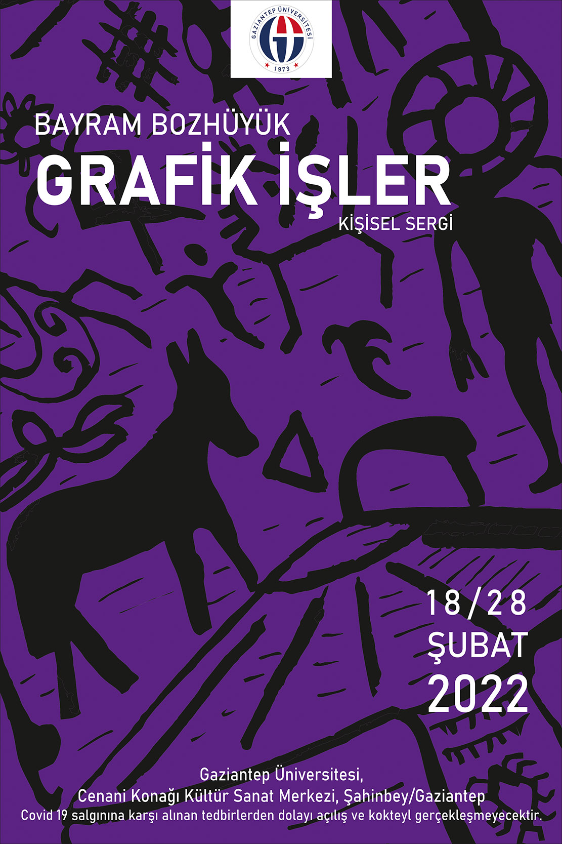 Bugüne kadar beş kişisel sergisi bulunan GAÜN Dr. Öğretim Görevlisi Bayram Bozhüyük’ün bu sergisinde 30 adet grafik tasarım çalışması bulunuyor. Grafik İşler Sergisi 28 Şubat 2022 tarihine kadar Tarihi Cenani Konağı Kültür ve Sanat Merkezinde sanatseverlerin ziyaretine açık olacak.
